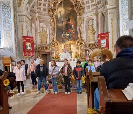 Am Sonntag, 5.10.2025 fand in Parndorf das Erntedankfest statt. Die hl. Messe feierte Pfarrer Mmag. Franz Borenitsch. An der Orgel war Kantor Stefan Keczöl mit seinem Chor. Die Lehrerin Astrid Reidinger und die Erstkommunionkinder gestalteten die hl. Messe. Mitglieder des Pfarrgemeinderates richteten die Krone und die Blumensträuße, die mit nach Hause genommen werden konnten. Danach gab es ein gemeinsames Mittagessen. Vielen Dank an alle.