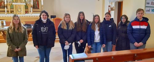Beim Gottesdienst am Sonntag, dem 13. März 2022 stellten sie sich der Pfarrgemeinde vor und gewährten Einblick in ihre Firmvorbereitung. Im Eingangsbereich, bei den zwei Säulen unter dem Chor, wurden zwei Plakate aufgehängt, auf denen die Firmlinge ihre Gedanken und Beziehungen zum Ausdruck bringen. Sie laden aber die Gläubigen auch ein, bei den Bildern inne zu halten und zu mediKeren.