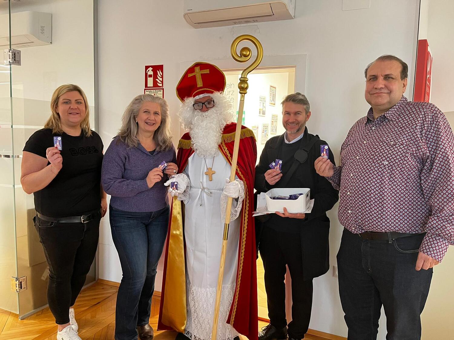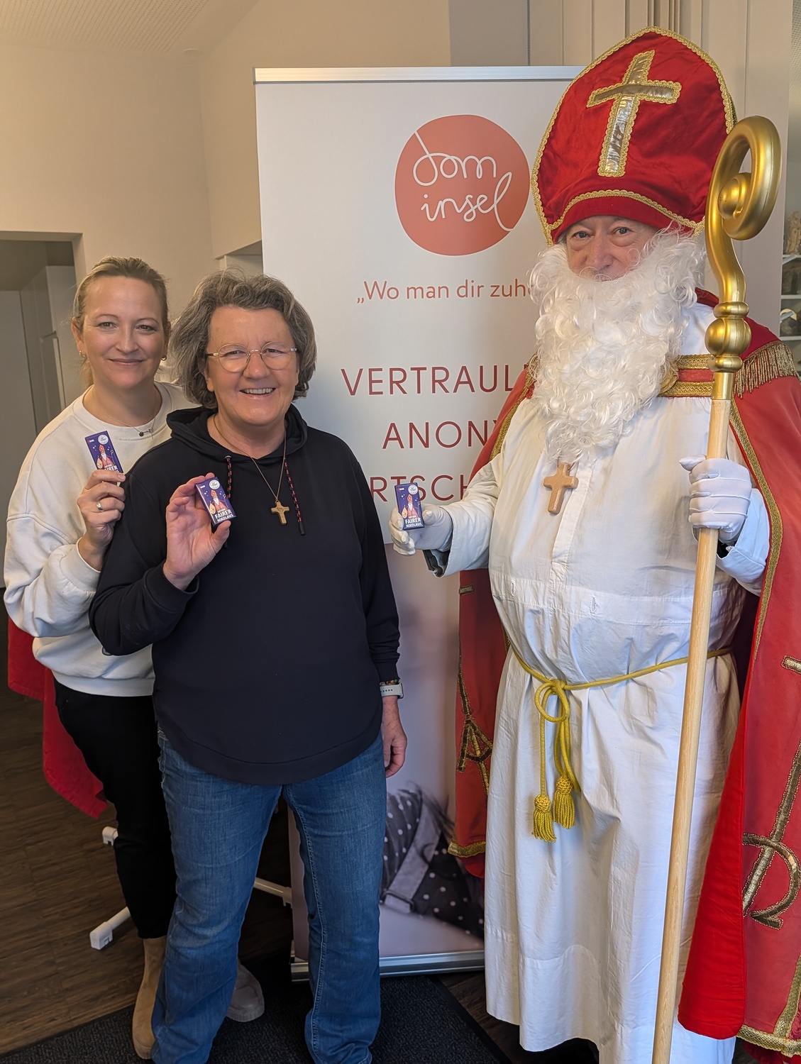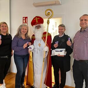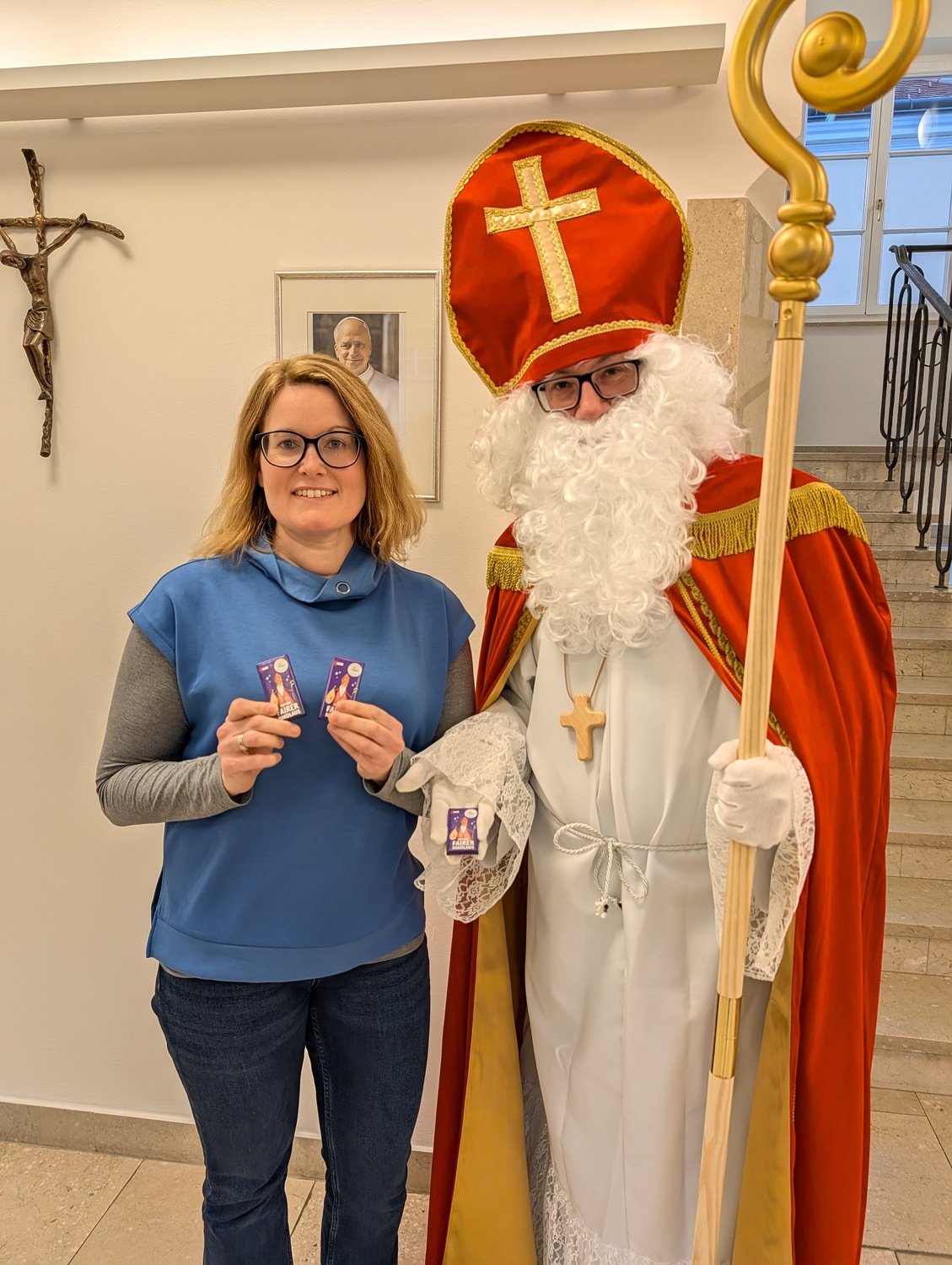 Der Nikolaus der KMB besuchte außerdem viele Kinder und brachte auch den Bewohnerinnen und Bewohnern des Caritas Haus Franziskus große Freude. Mit fair gehandelter Schokolade, herzlichen Worten und kleinen Gesten sorgte er dort für strahlende Augen und eine berührende Einstimmung auf die Adventzeit.