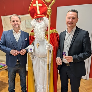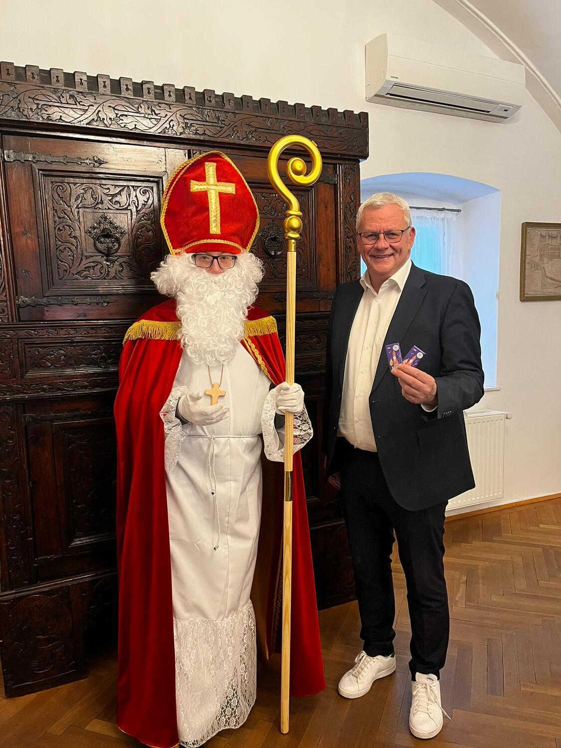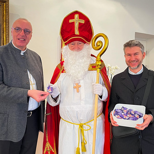 Als Nikolaus unterwegs waren Vinzenz Jobst, Obmann der Katholischen Männerbewegung der Diözese Eisenstadt, sowie Johann Artner, Generalsekretär der Katholischen Aktion der Diözese Eisenstadt.