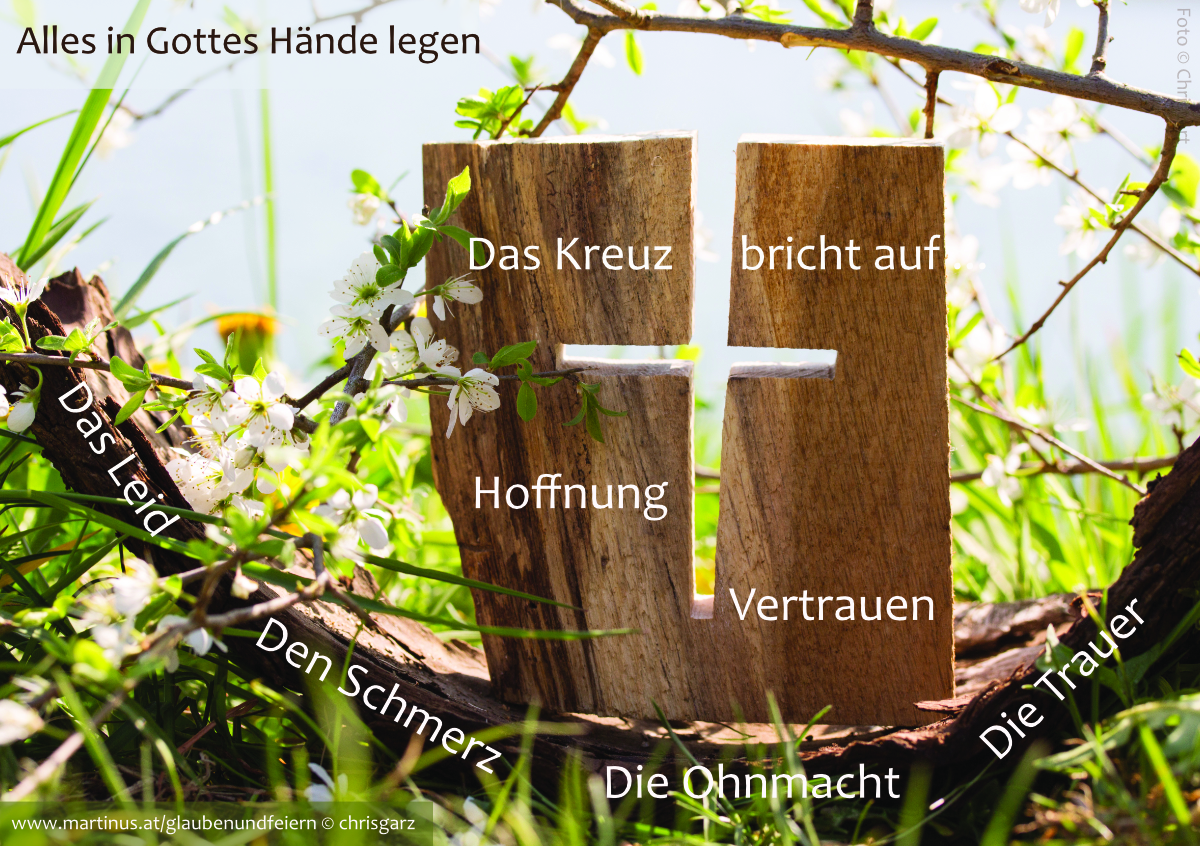 Als Erinnerung an den Tod Jesu legen wir Blumen zum (selbstgemachten) Kreuz.