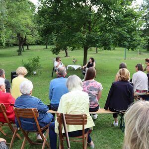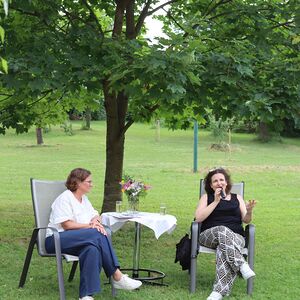 Katja Ratheiser, Enkeltochter von Viktor Frankl, war am 3. Juli zu Gast beim abendlichen Gartengespräch im Pfarrgarten Oberpullendorf.