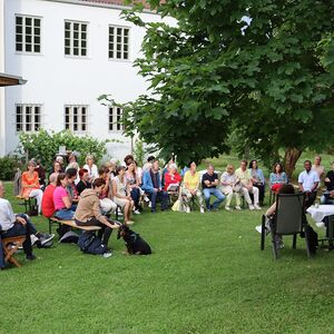 Im Gespräch mit Barbara Buchinger und den über 50 Teilnehmerinnen und Teilnehmern erzählte sie über die gemeinsame Zeit und mit ihrem Großvater, wie zum Beispiel über den Arbeits- und Familienalltag. Sie erinnerte sich an viele gemeinsame Feste, die in der Familie auch interreligiös - ihr Großvater war praktizierende Jude, ihre Großmutter Katholikin - gefeiert wurden und an Witze, die ihr Großvater immer wieder erzählt hat, weil er den Humor so sehr liebte und damit auch seine wissenschaftlichen Arbeiten illustrierte. Sie sprach über Haltungen und Werte, die Viktor Frankl seiner Tochter und seinen Enkelkindern mitgegeben hat, über die Rezeption seines umfangreichen Werkes im In- und Ausland , über die verschiedenen Rollen und Aufgaben der Familienmitglieder in der Pflege des geistigen Erbes, z.B. beim Aufbau des Viktor-Frankl-Zentrums in Wien und welche Bedeutung die Grundhaltungen der Logotherapie in ihrem (Berufs)leben haben.