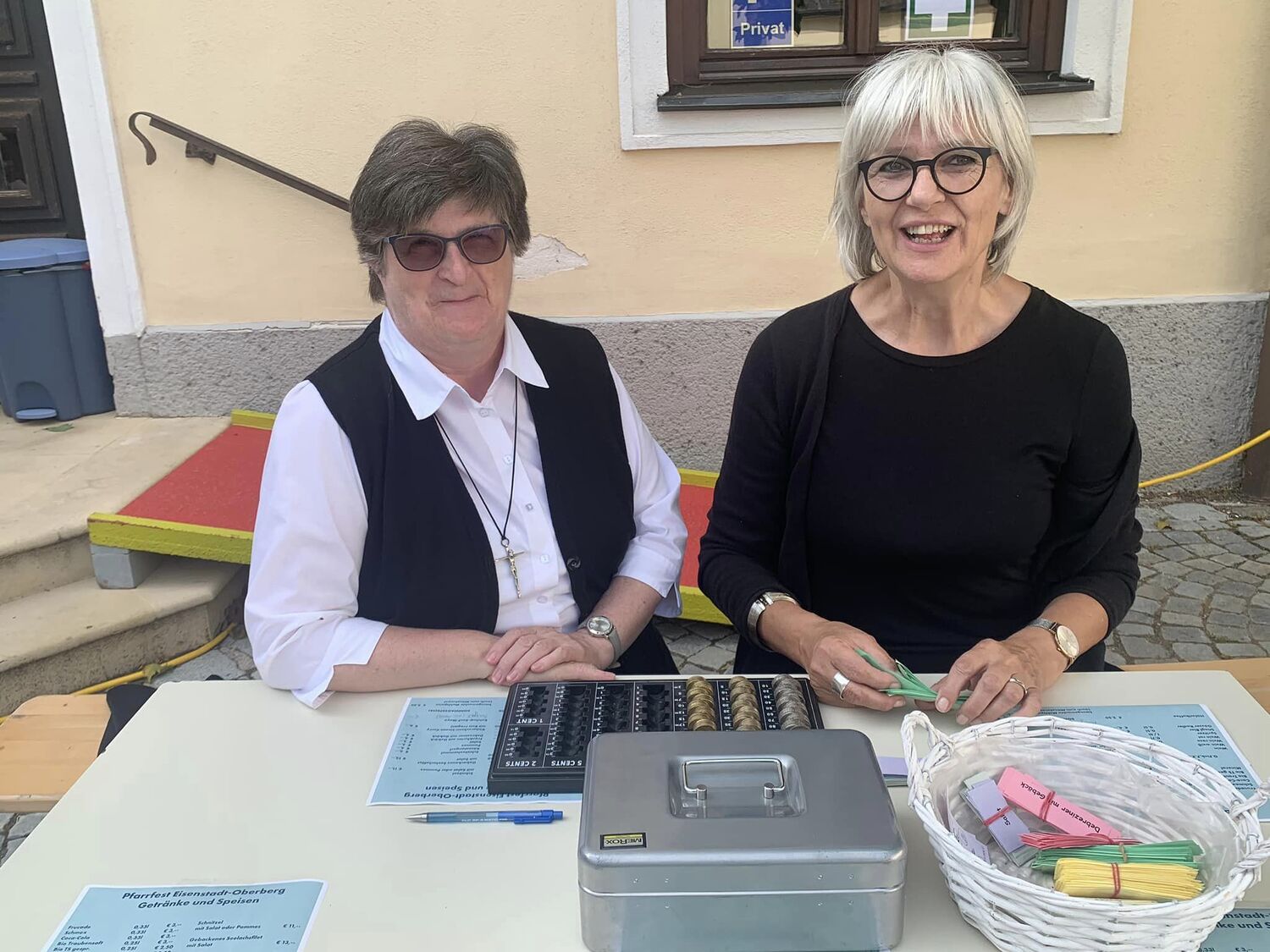 Danke an alle Helferinnen und Helfer in der Küche und an den Fritteusen, hinter der Bar, beim Bonverkauf und bei der Abwasch. Danke an alle Losverkäufer, Kellnerinnen und Kellner, sowie an die Technik. Danke an die Stadt und den Bauhof für die tolle Zusammenarbeit. (Es hat uns riesig gefreut, dass der Herr Bürgermeister, der Herr Vizebürgermeister und die Frau Vizebürgermeisterin mit uns gefeiert haben!). Danke an alle Sponsoren der Tombolapreise und jenen, die und durch Plakate finanziell unterstützt haben. Danke an die Mitarbeiterinnen beim Kinderprogramm, an die Sängerinnen und Sänger des Chores aus Kleinhöflein und die Band Freu(n)de. Danke an alle, die die Tische und Zelte aufgestellt haben. Nicht zuletzt danke an das Organisationsteam rund um Günter, Bettina, Fred und Andi. Ein großes Dankeschön natürlich an alle Besucherinnen und Besucher vom Oberberg, aus Kleinhöflein und der Dompfarre, sowie an die vielen Besucher aus nah und fern!