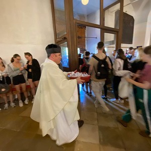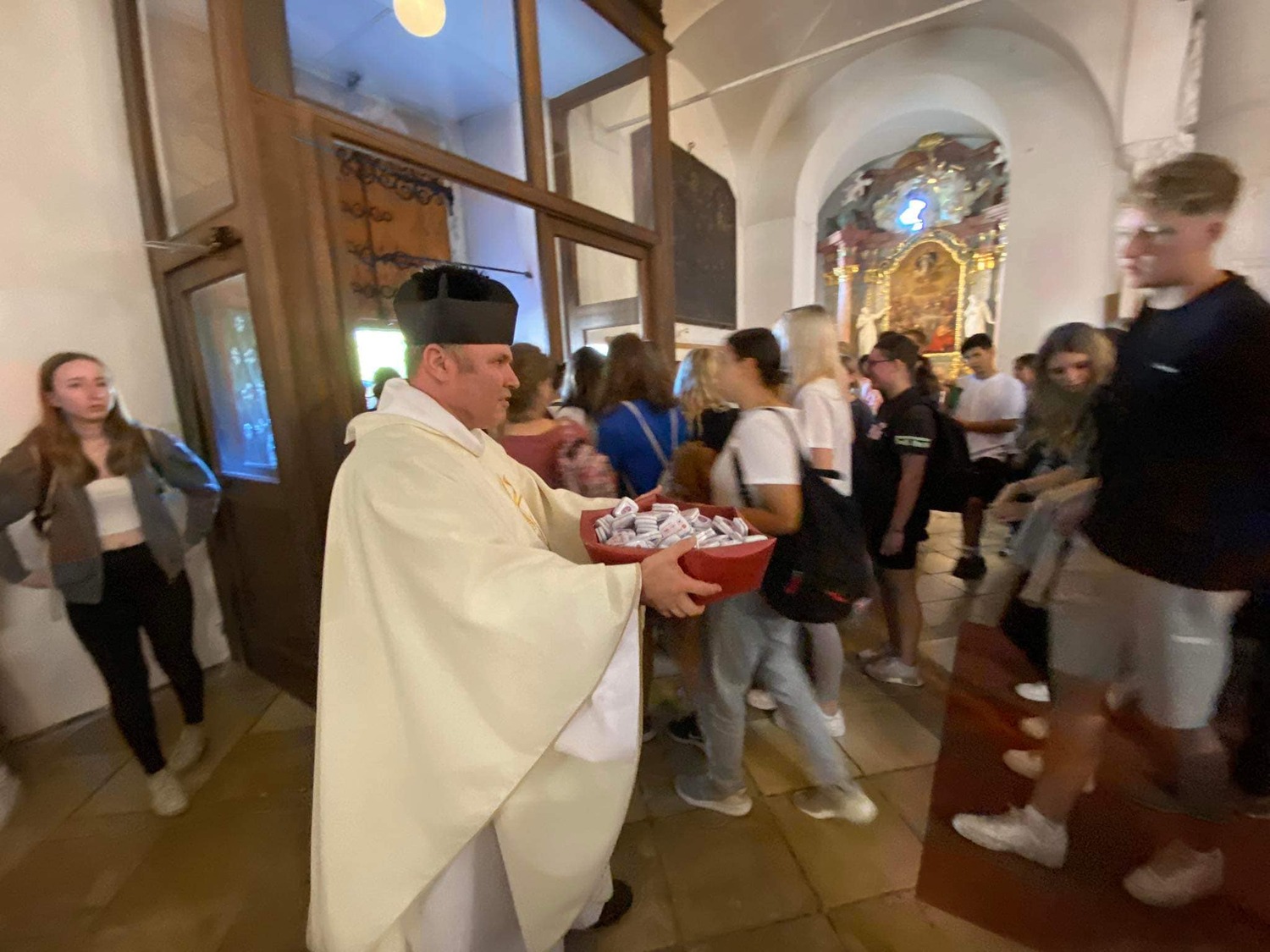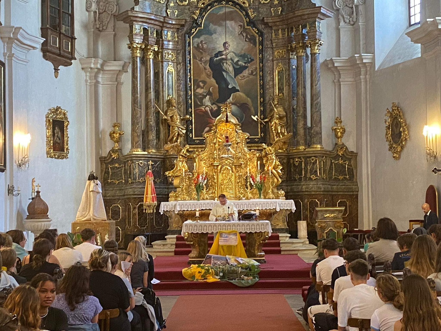 Am 6. September 2023 pilgerte unser Herr Pfarrer in doppelter Funktion mit rund 450 Schülerinnen und Schülern des Theresianums nach Loretto. Einerseits als Pfarrmoderator der Stadt- und Propsteipfarre Eisenstadt-Oberberg, in dessen Gebiet diese hervorragende Schule liegt, andererseits als Militärpfarrer, um mit Schülern, welche in den nächsten Jahren ihren Grundwehrdienst ableisten werden, ins Gespräch zu kommen.