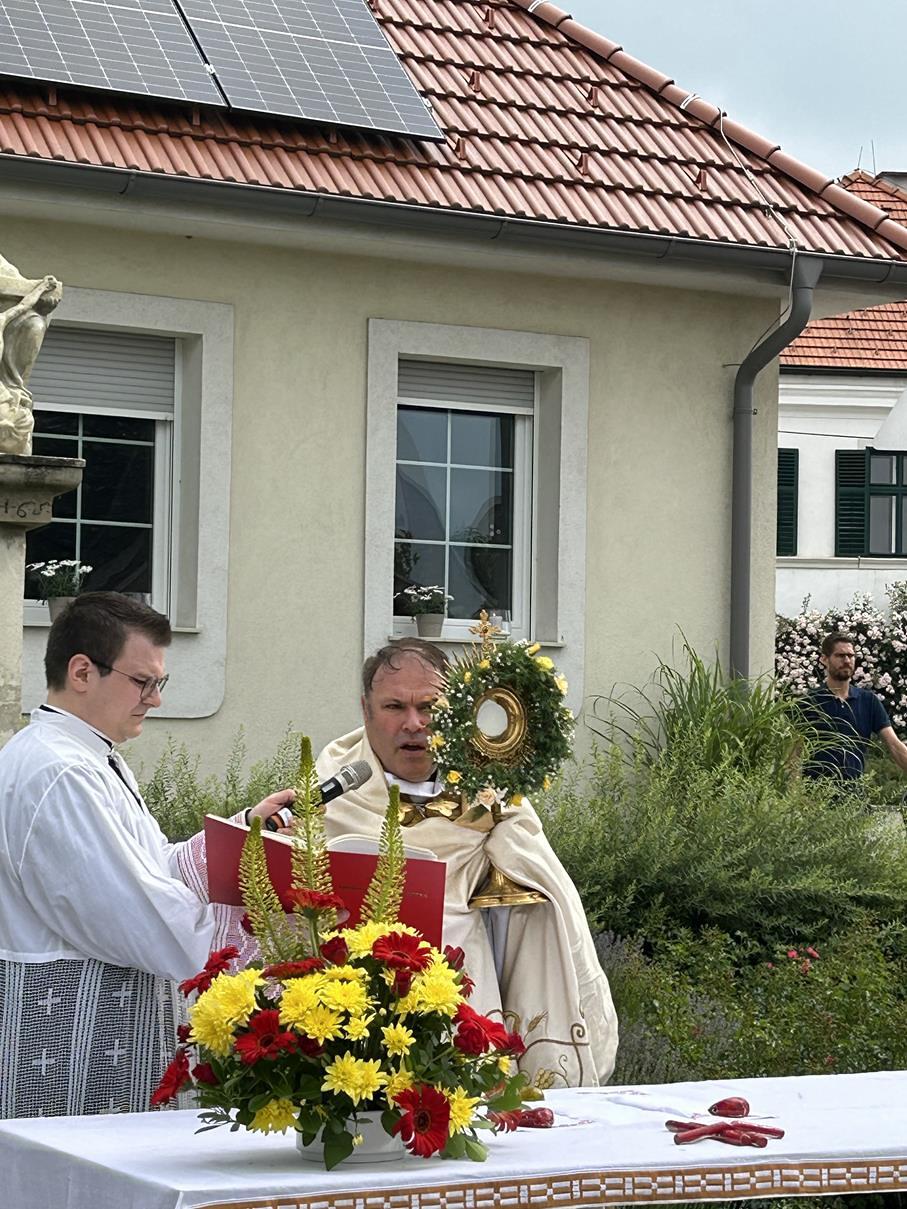 Trotz Regenvorhersage waren wir optimistisch die Prozessin zu riskieren und nicht abzusagen. Besonders beeindruckend war das Spalier des MV Winzerkapelle Kleinhöflein und der Feuerwehr Kleinhöflein bei der Rückkehr zur Kirche zu den Klängen des "Te Deum"...