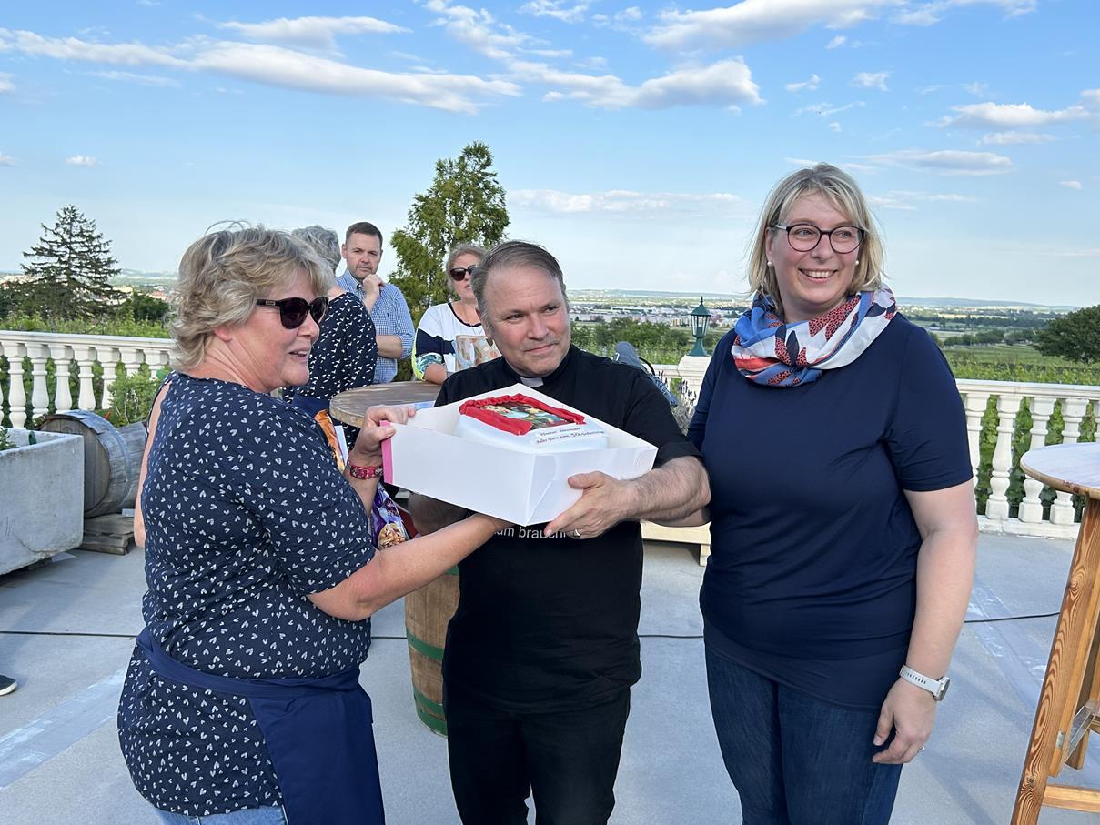 Man gratuliert zwar nicht im vorhin, aber bei einem besonderen Geburtstag fängt man früher an und hört später auf. Deshalb nutzten wir diesen herrlichen Rahmen des Pfarrfestes, um unserem Pfarrmoderator Alexander Wessely zu seinem anstehenden 50. Geburtstag zu gratulieren (ah „30.“ wie er sagt ;-))