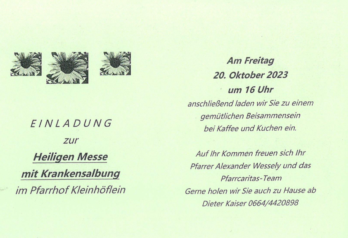 Einladung Heilige Messe mit Krankensalbung 20. Oktober 2023