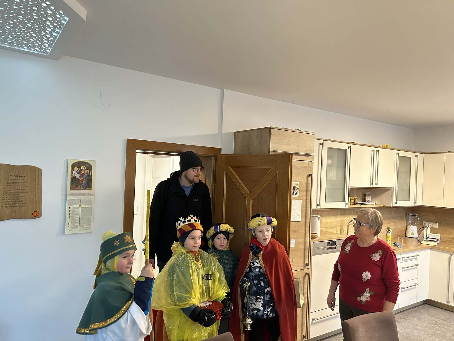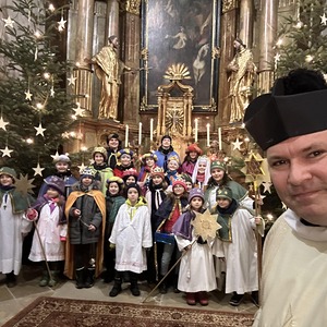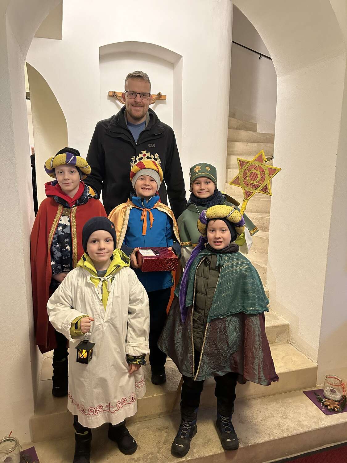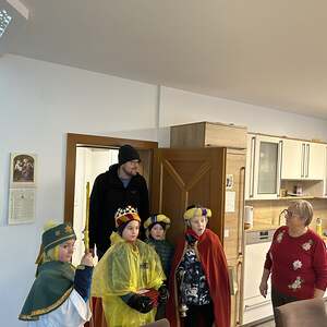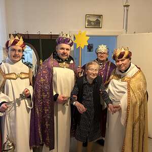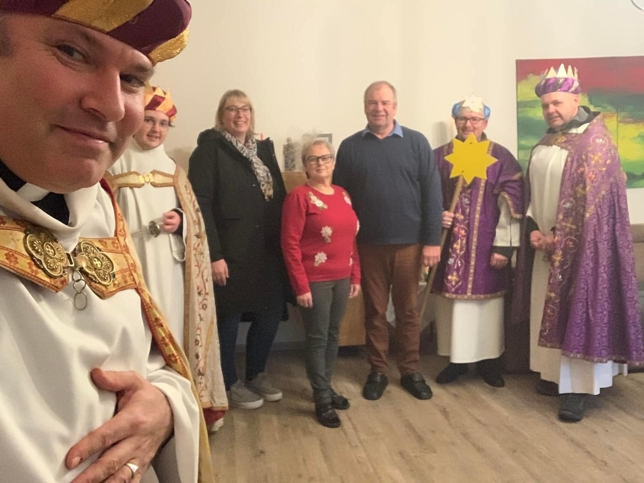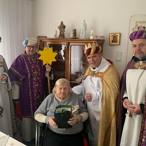 Am Nachmittag war auch eine Erwachsenen Gruppe mit Pfarrer Alexander unterwegs. Besucht wurden ältere und kranke Pfarrangehörige, für die der Weg in die Kirche schon beschwerlich ist. Außerdem wurde auch zu zwei runden Geburtstagen gratuliert.