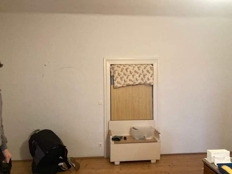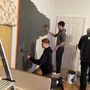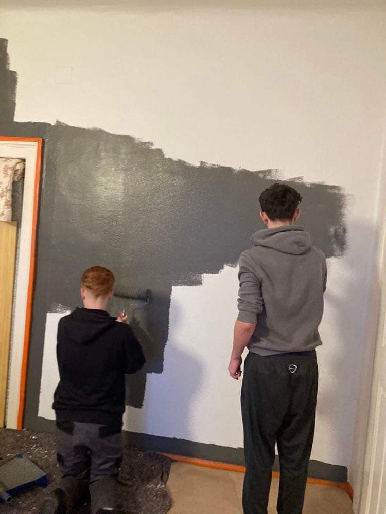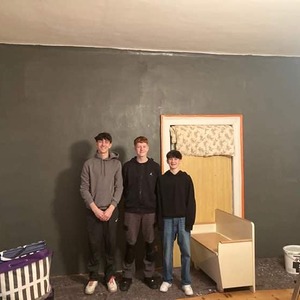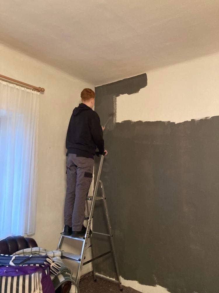 Für eine Wand wurde grau ausgewählt, alle anderen werden weiß gestrichen, natürlich durch unsere Jugend selbst.