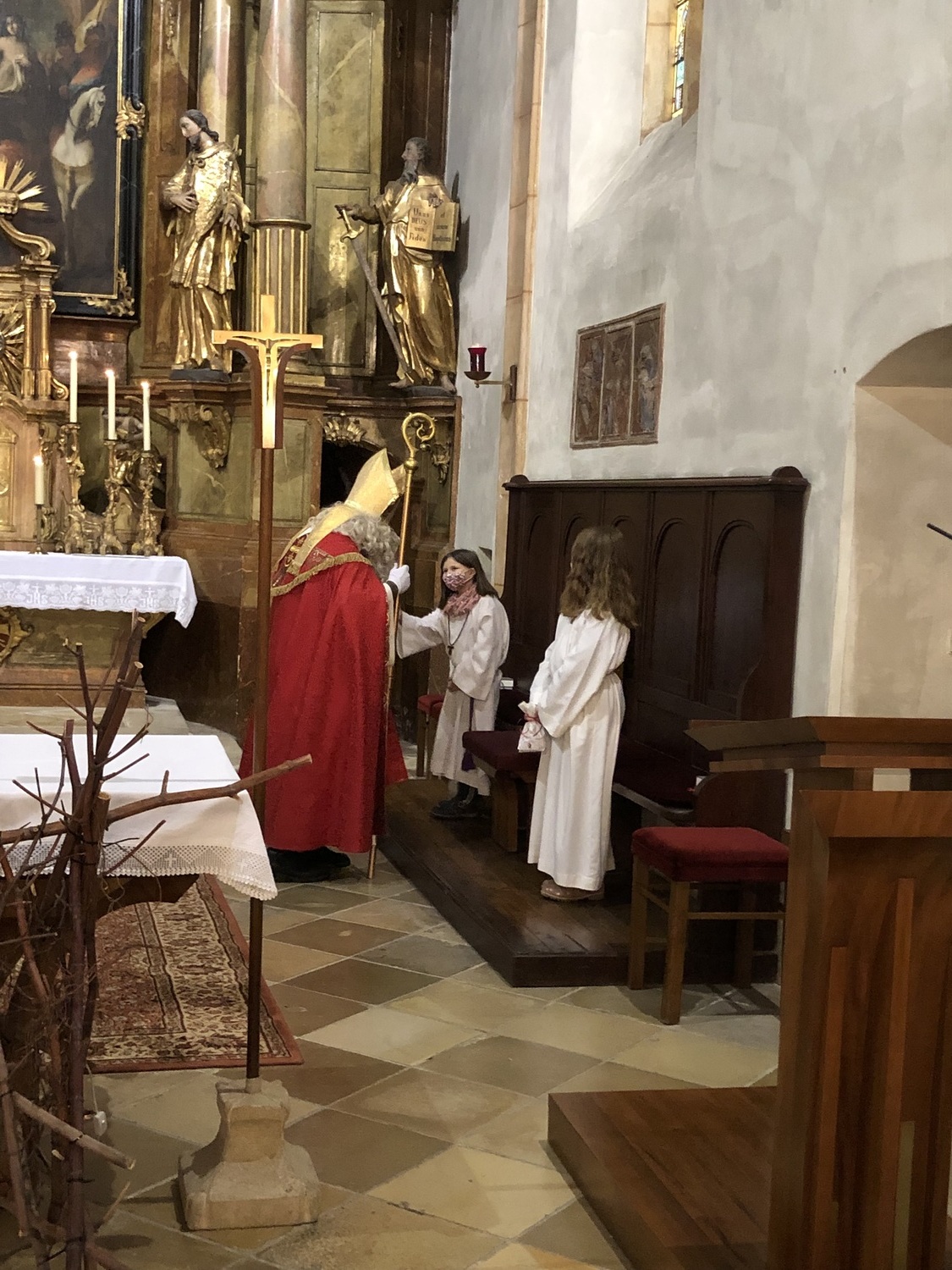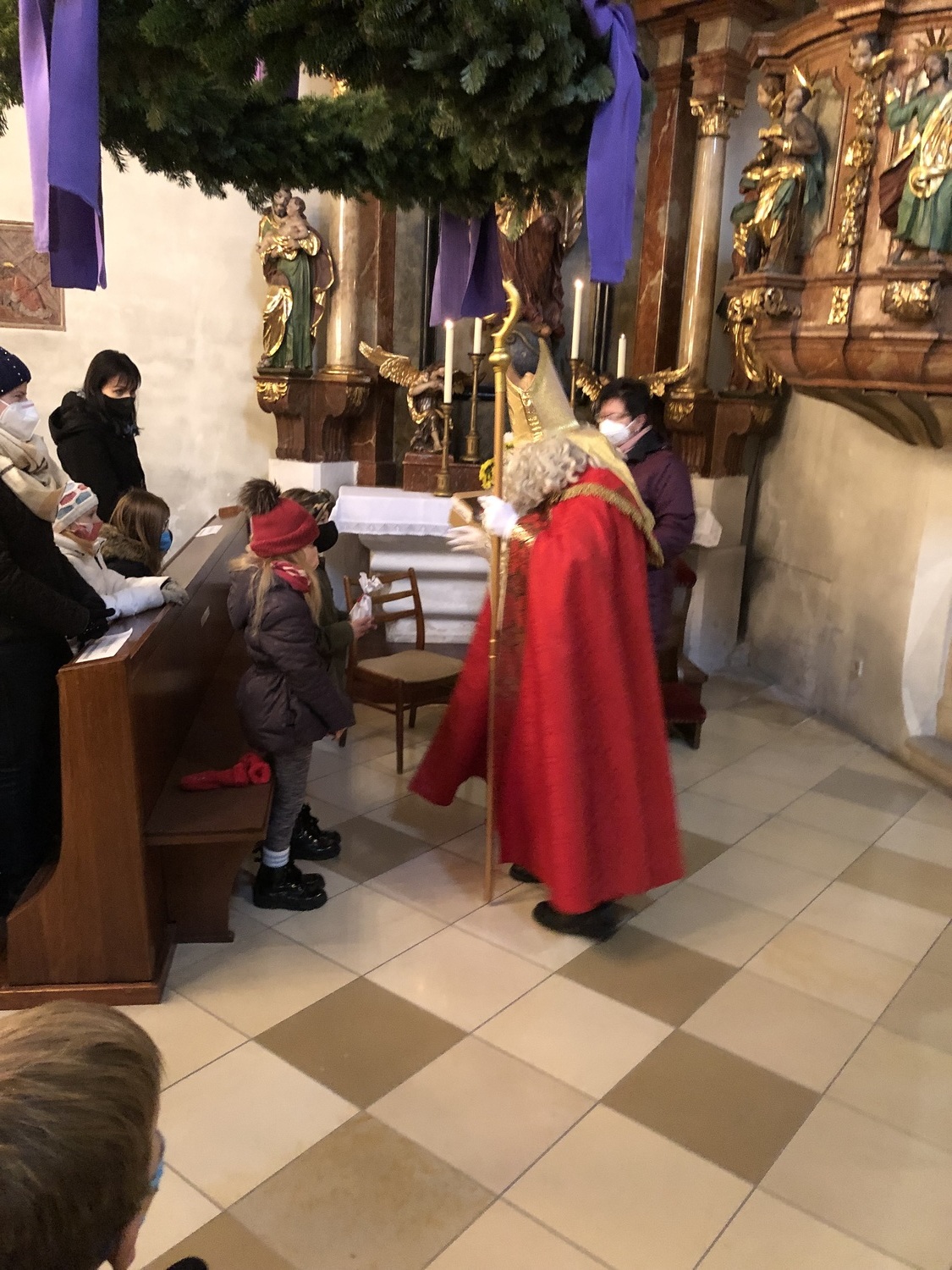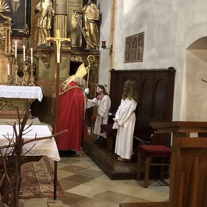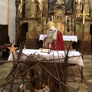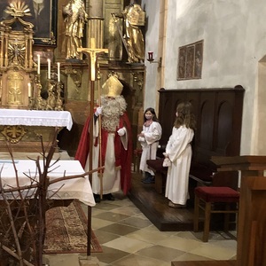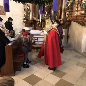 Das Highlight bei der Hl. Messe am 2. Adventsonntag mit den Erstkommunionkinder war der Besuch vom Heiligen Nikolaus, welcher viele Nikolosackerl an kleine und große Kinder verteilte.