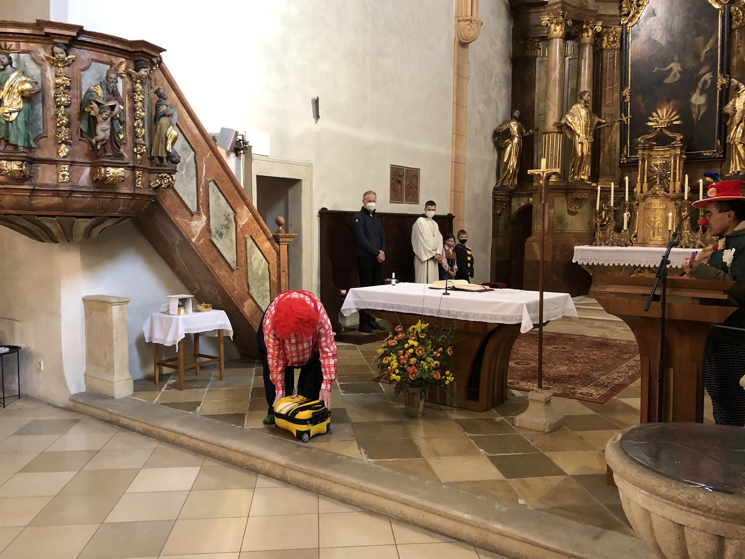 Pfarrer Alexander Wessely begrüßte alle Clowns, Cowgirl & Cowboys, alle Tiger und Indianer, alle Harry Potter & Hermines, alle Prinzessinnen, Polizisten und Pippi Langstrumpfs ...