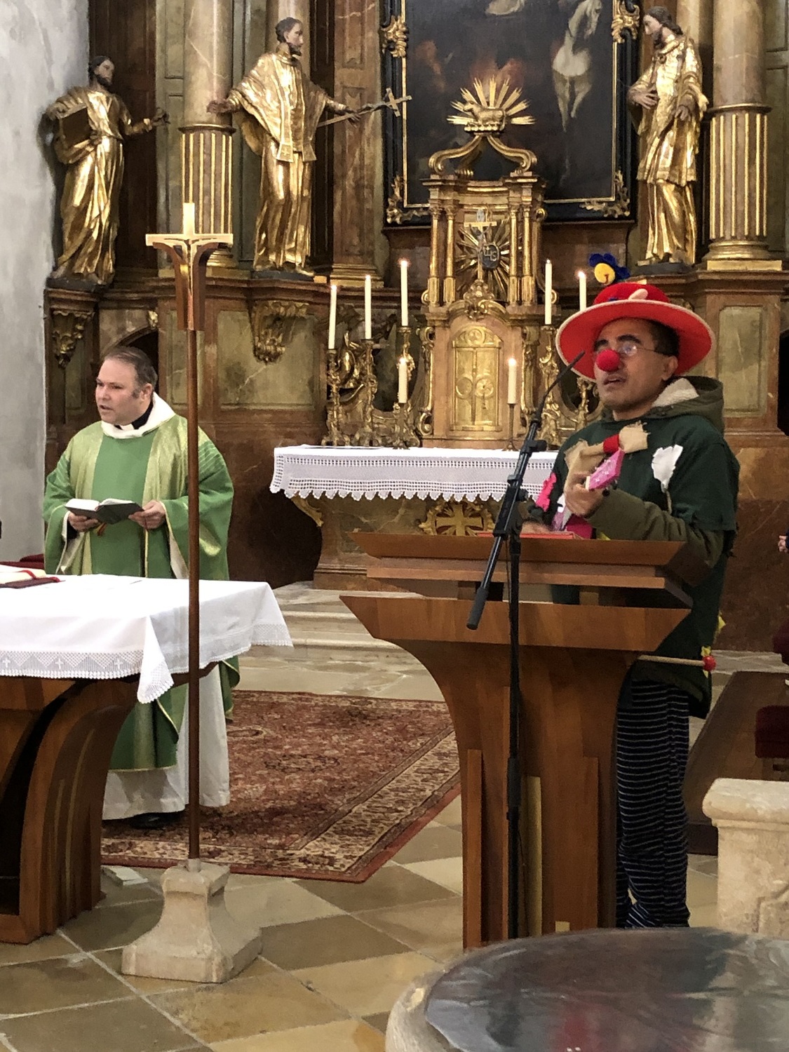 Ja, wir haben heute sowohl in Kleinhöflein, als auch am Oberberg Gottesdienst mit Bezug zum heutigen Faschingssonntag gefeiert.