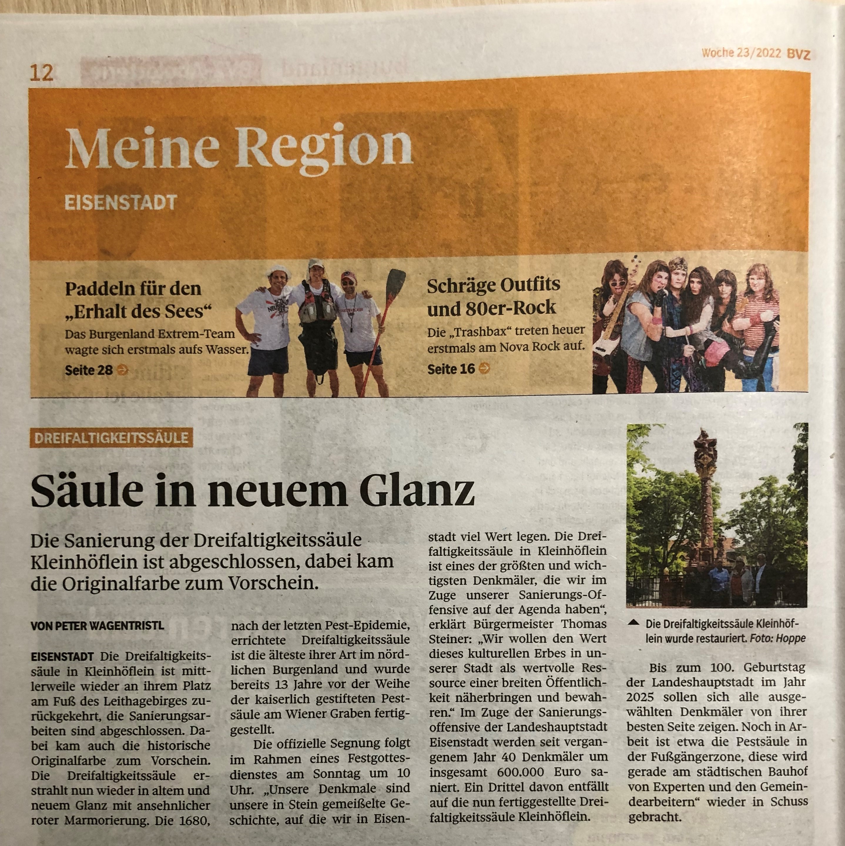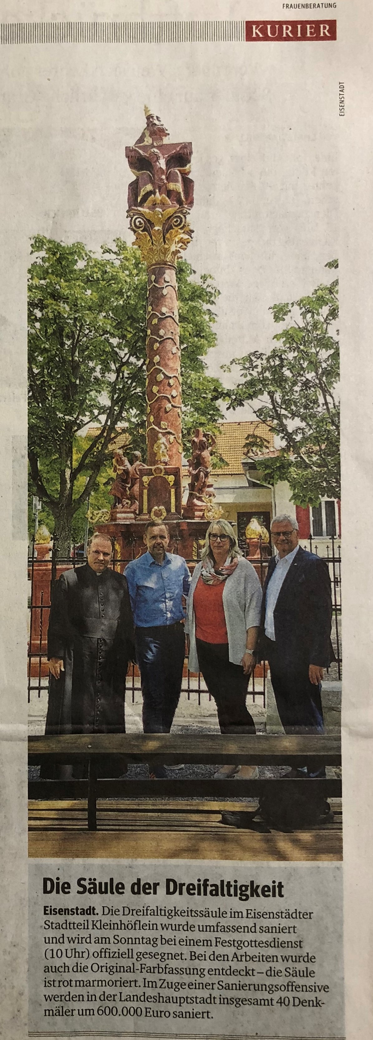 Presseartikel - Sanierung der Dreifaltigkeitssäule Kleinhöflein abgeschlossen