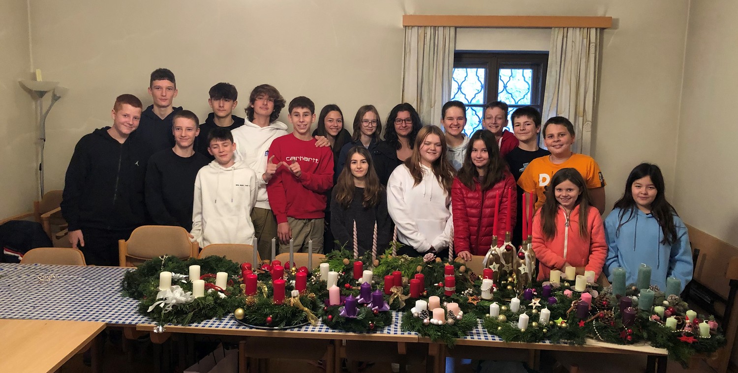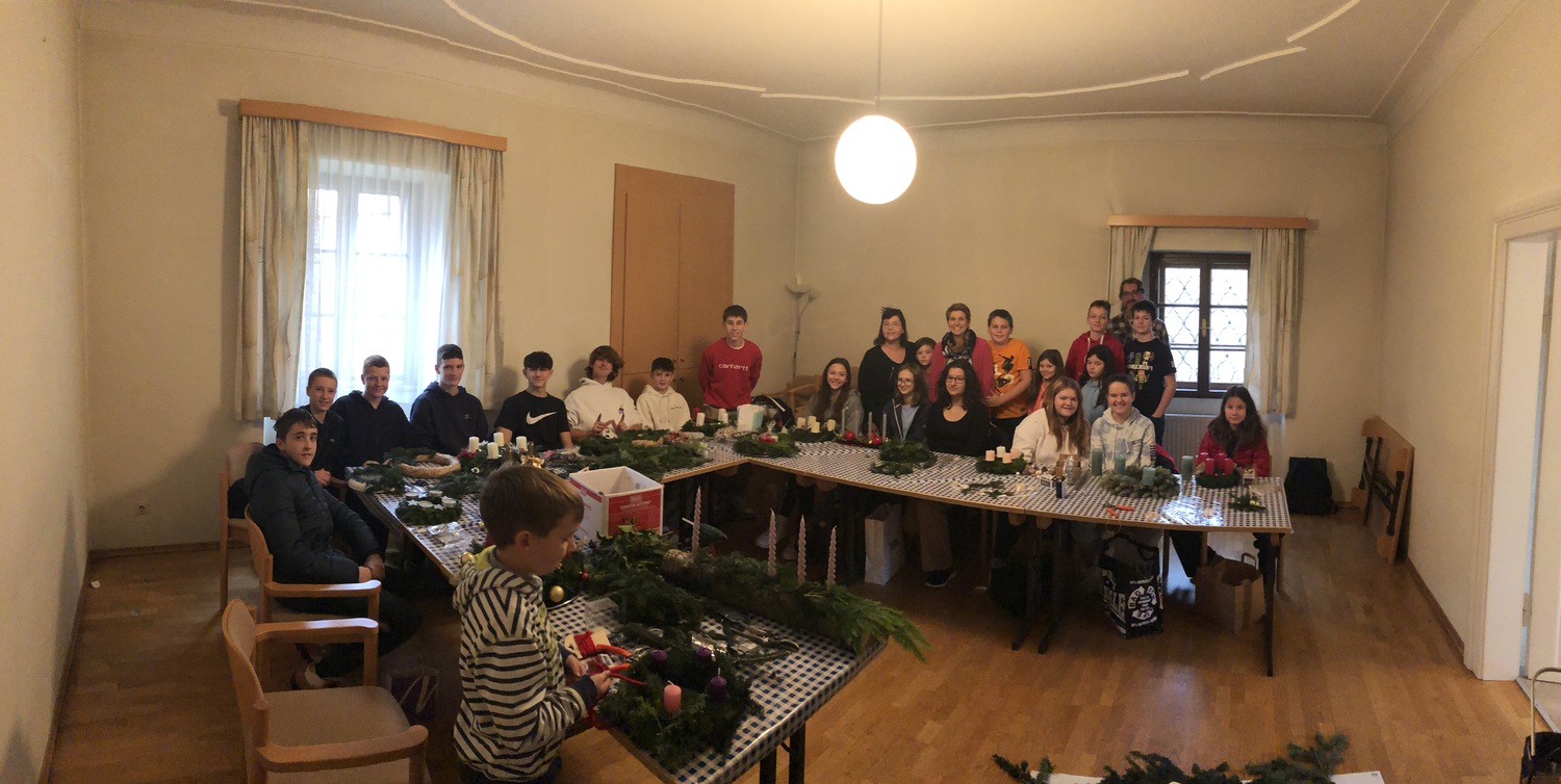 Als Einstimmung in die Adventzeit fand am 26.11.2022 das Adventkranzflechten der Firmlinge im Pfarrhof statt. Die dabei entstandenen wunderschönen Unikate wurden am Sonntag im Rahmen der Hl. Messe von Pfarrer Alexander Wessely gesegnet.