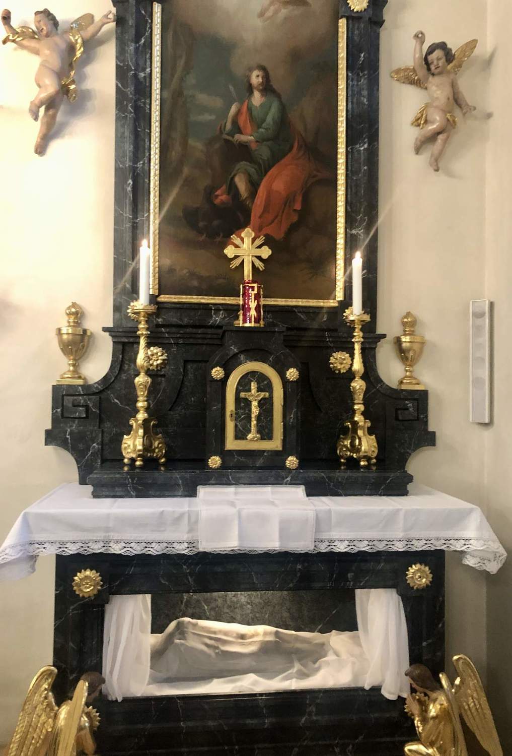 Das Heilige Grab im Seitenaltar der Pfarrkirche ist am Karsamstag zum Betrachten und Beten geöffnet. Wie die Weihnachtskrippen laden die Hl. Gräber ein zum Verweilen  und letztendlich zum Miterleben der Heilsgeschehnisse des Todes und der Auferstehung Jesu.