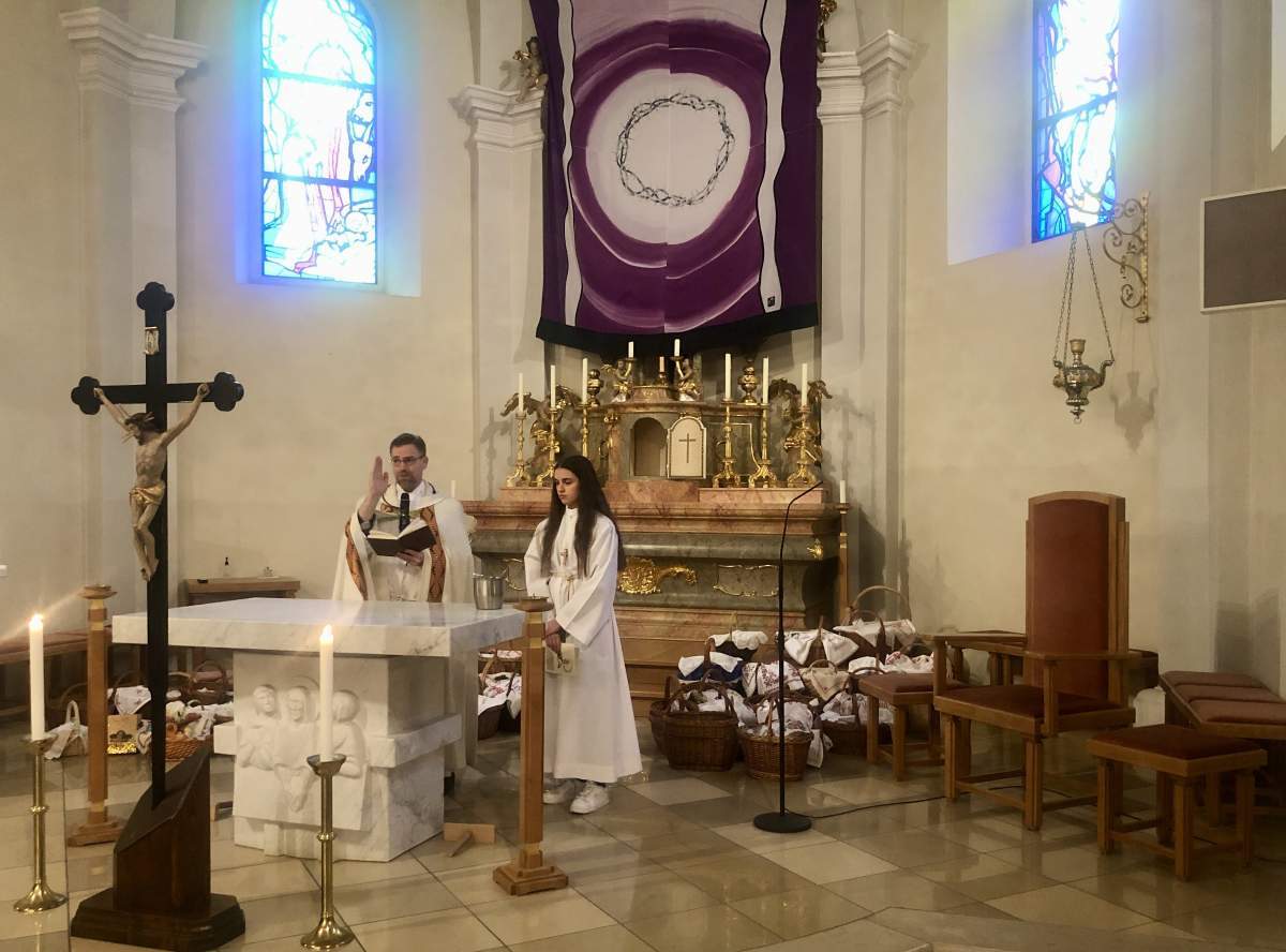 Um 12.00 Uhr leitete Pfarrmoderator Stefan Jahns die Andacht vor der Heiligen Grab, im Anschluß daran segnete er die Osterspeisen.