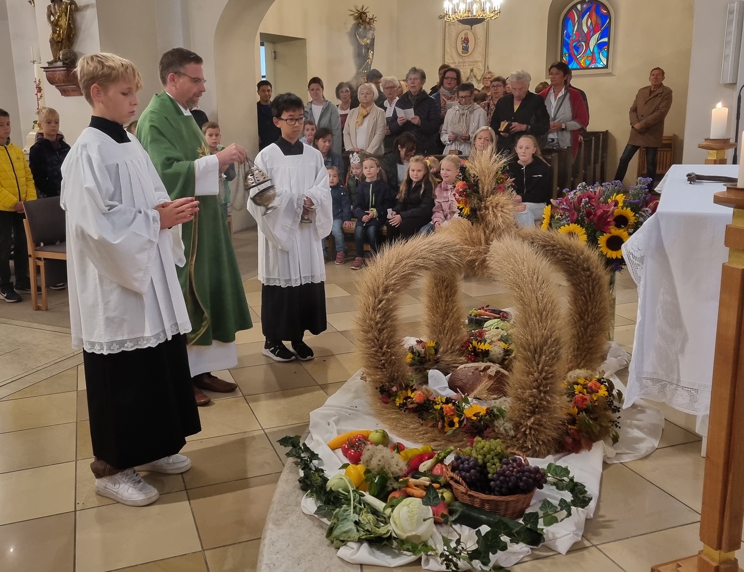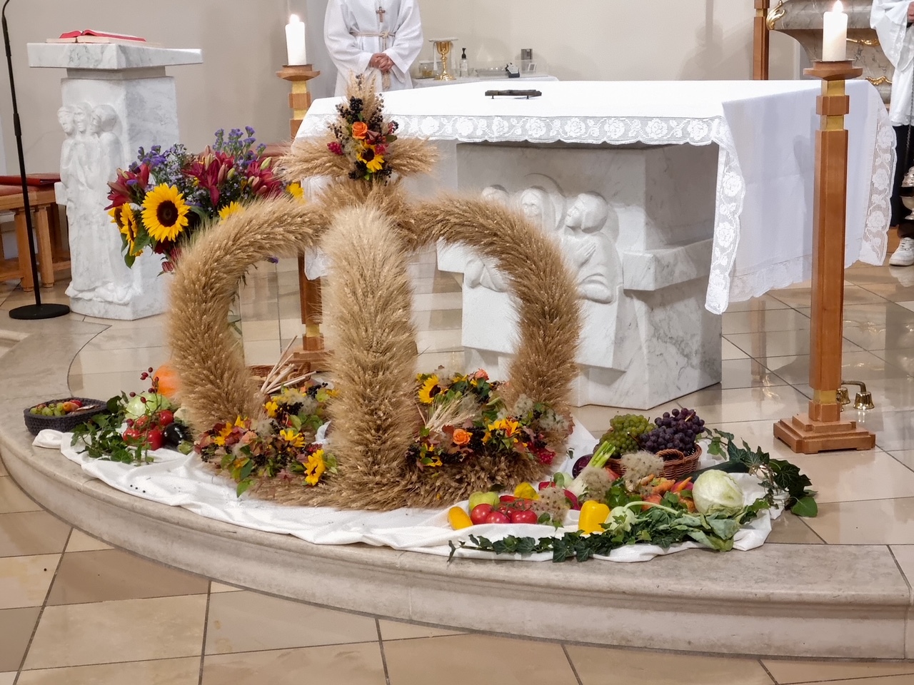 Die Pfarre feierte am Sonntag, 24. September 2023, das Erntedankfest. Um 9.45 Uhr wurde die Erntekrone bei der Marienkapelle feierlich gesegnet, dann ging es in einer Prozession zur Kirche. Anschließend feierte Pfarrmoderator Mag. Stefan Jahns die hl. Messe.