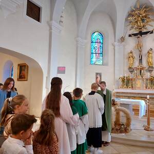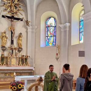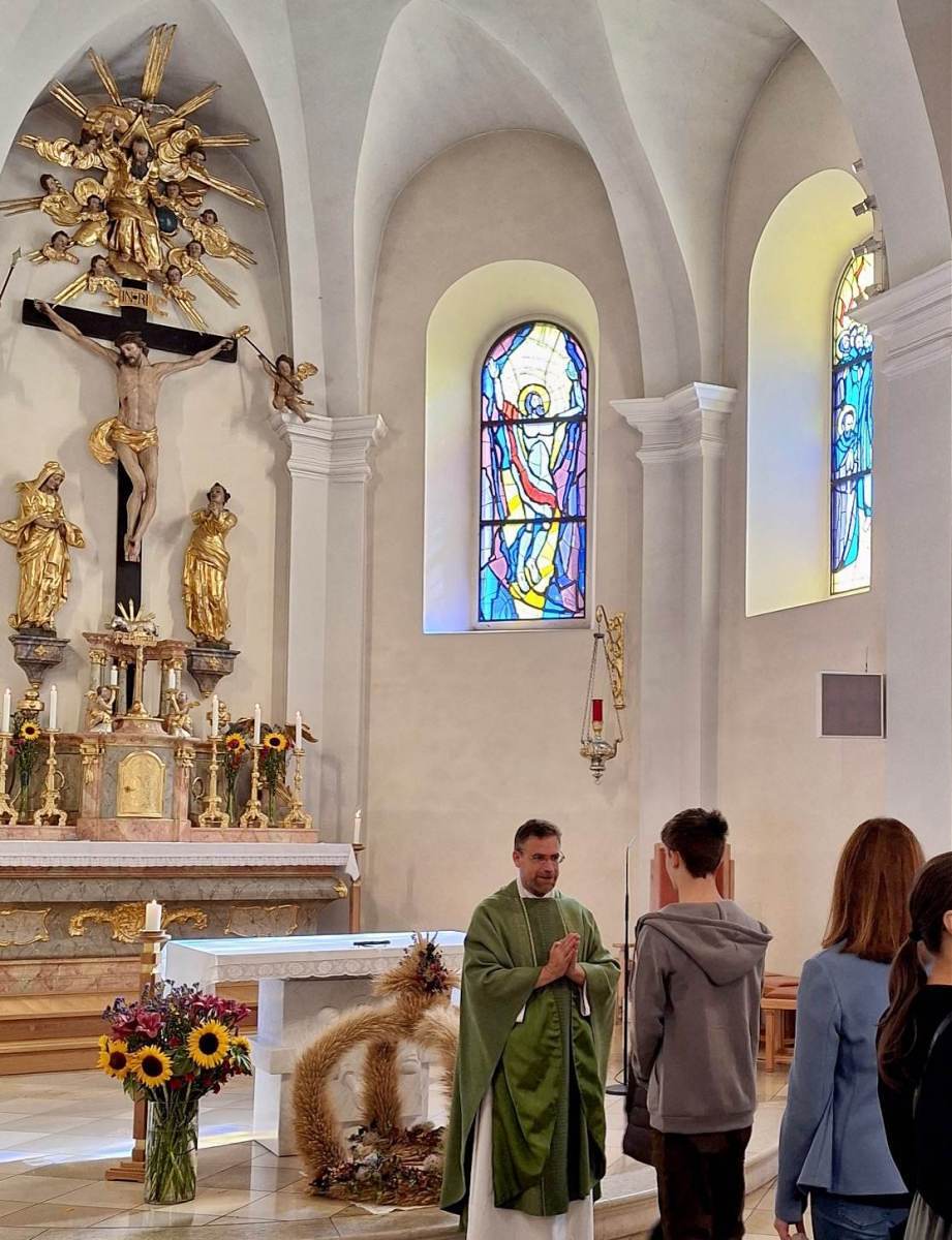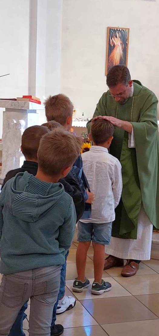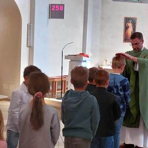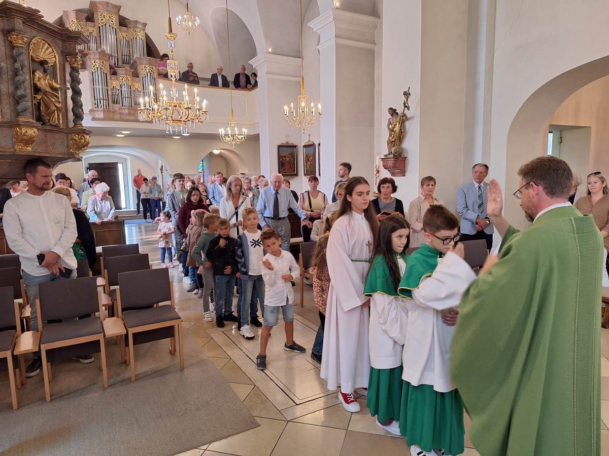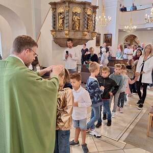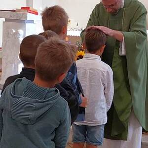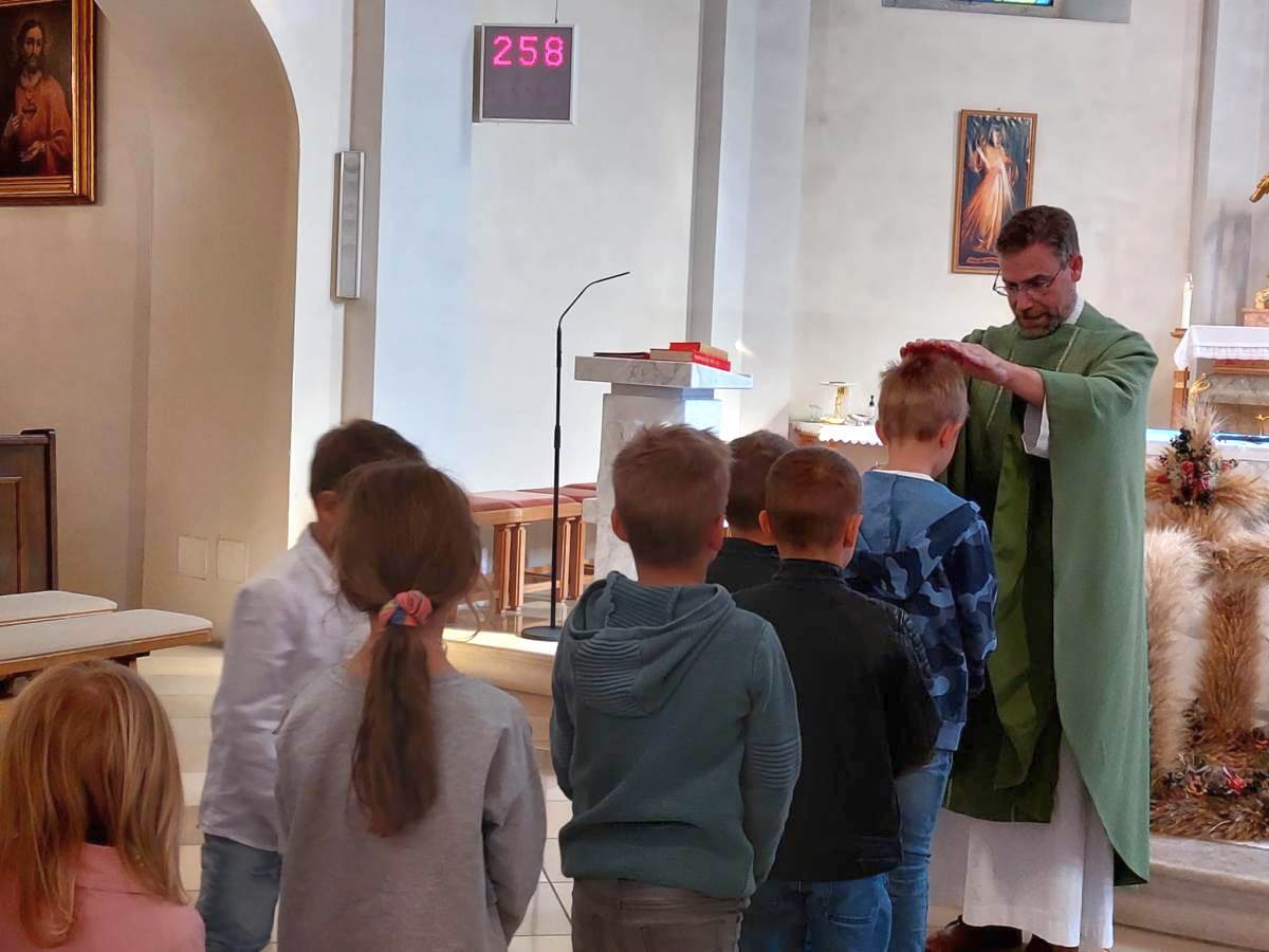 Nach der hl. Messe am Sonntag, 1.10.2023, segnete Pfarrmoderator Mag. Stefan Jahns die Kinder. Mit der Kindersegnung sollen die Jüngsten unter den Schutz Gottes in unserer Pfarre gestellt werden, die Schutzengel sollen die Kinder begleiten.