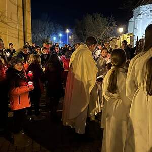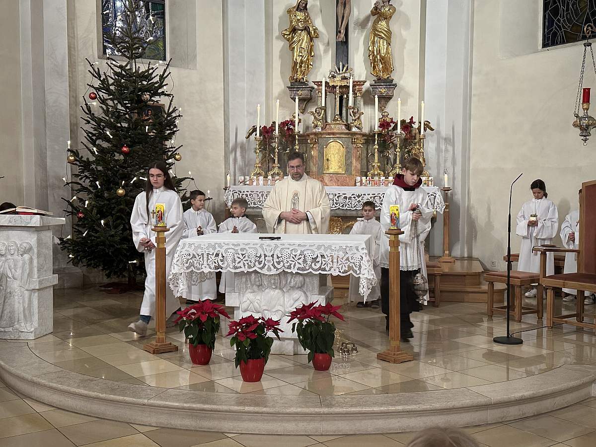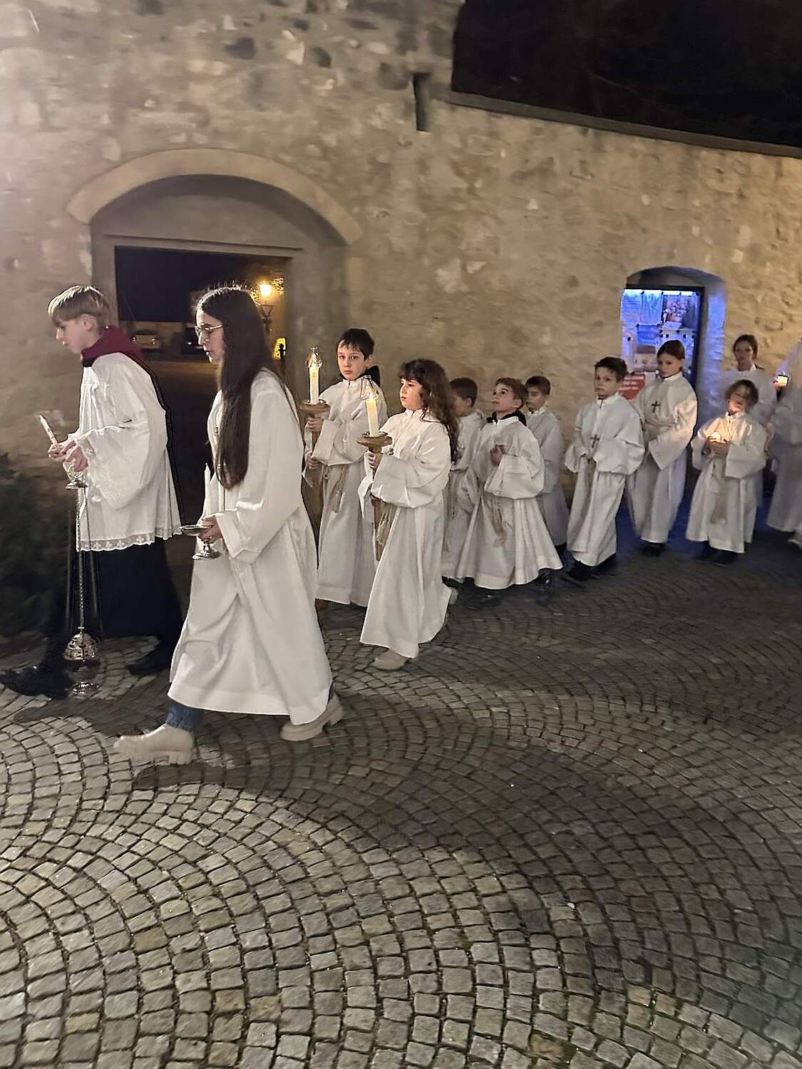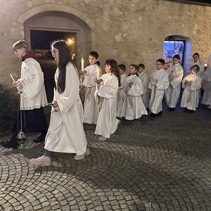 Um 18.00 Uhr erfolgte die Segnung der mitgebrachten Kerzen bei der Dreifaltigkeitssäule, danach die Prozession in die Kirche und anschließend die hl. Messe mit den Erstkommunionkindern und den Firmkandidaten. Musikalisch umrahmt wurde die Messe vom Kirchenchor. Am Ende der Messe wurde der Blasiussegen mit zwei vor dem Hals gekreuzten Kerzen erteilt.