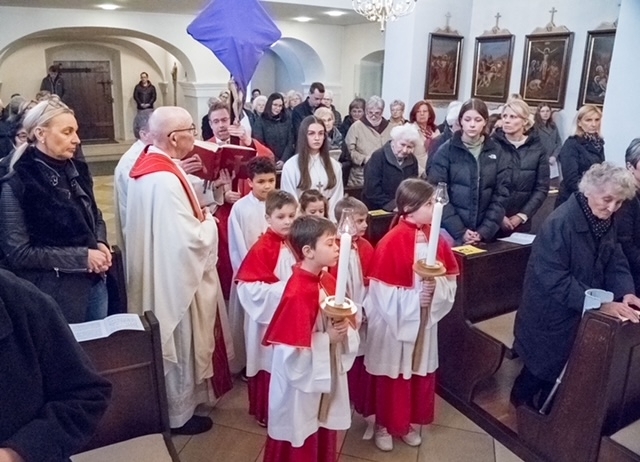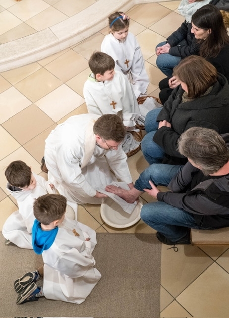 Bilder vom Palmsonntag mit der Palmweihe, Gründonnerstag die hl. Messe vom Letzten Abendmahl und Fußwaschung, am Karfreitag die Feier vom Leiden und Sterben Christi, am Karsamstag gemeinsame Andacht beim Heiligen Grab und Speisensegnung, die Osternachtsfeier am Karsamstag mit Feuerweihe und Entzünden der Osterkerze sowie am Ostersonntag das Osterhochamt.