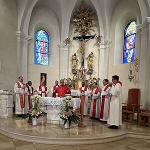 Am Montag 3.6.2024 trafen sich die Jungpriester der Diözese Eisenstadt zu einem Gedankenaustausch und anschließender Meßfeier in der Pfarre Wulkaprodersdorf. Bischof Ägidius Zsifkovics, Generalvikar Michael Wüger und P. Lorenz Voith nahmen an diesem Treffen teil.