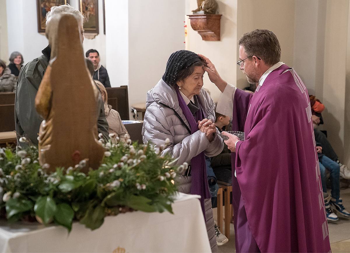 Pfarrmoderator Jahns feierte am 4.3.2025 den Aschermittwoch, den Beginn der 40-tägigen Bußzeit, in einer vollen Kirche. Viele Gläubige waren gekommen, um das Aschenkreuz zu empfangen. Die Asche für die Spendung des Aschenkreuzes wird aus den verbrannten Palmzweigen des Vorjahres bereitet und vom Priester gesegnet. Pfarrmoderator Jahns hat dieses Jahr mit den Volksschulkindern diese Asche gemacht.