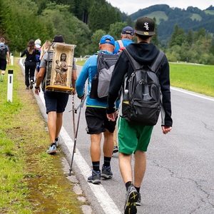 Am Donnerstag, 21. August starteten viele Fusswallfahrer den Weg nach Mariazell, am Rücken die Statue, die abwechselnd von den Fußwallfahrern getragen wurde.