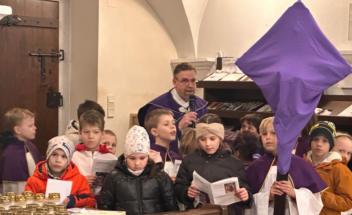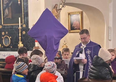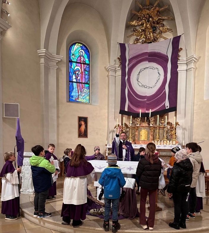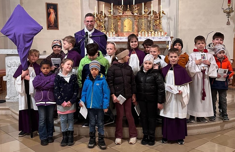 Pfarrmoderator Mag. Stefan Jahns betete mit Kindern den Kreuzweg.