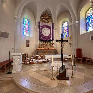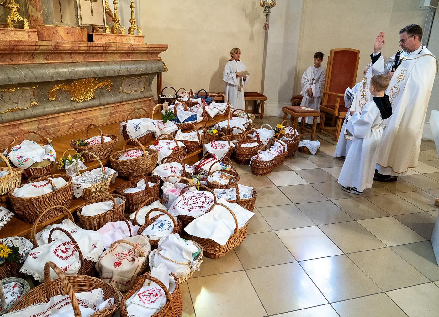 Am Karsamstag können die Gläubigen das Heilige Grab in der Pfarrkirche aufsuchen und beten. Um 12.00 Uhr gab es das gemeinsame Gebet vor dem Heiligen Grab und die Segnung der Osterspeisen.