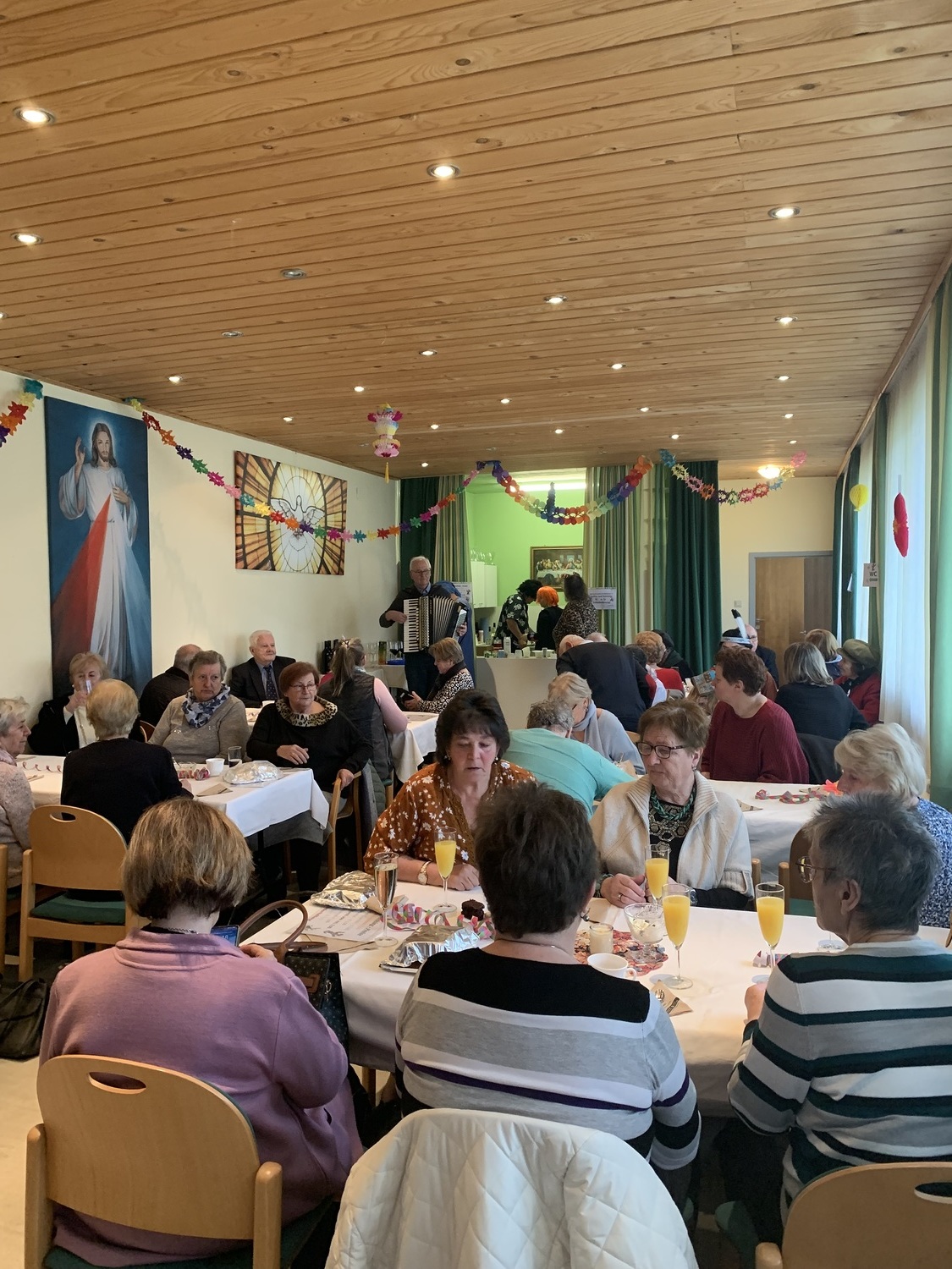 Nach der Hl. Messe wurde dieser im Kommunikationsraum gefeiert. Hausgemachte Mehlspeisen, gepflegte Getränke, gute Musik, lustige Sketches und beste Stimmung empfingen die Gäste und trugen zu deren guter Unterhaltung bei.