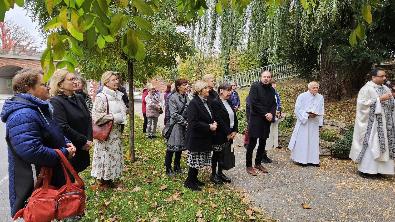 Pater Kuruvila und Diakon Dr. Peter Zotti am Weg zum Kriegerdenkmal
