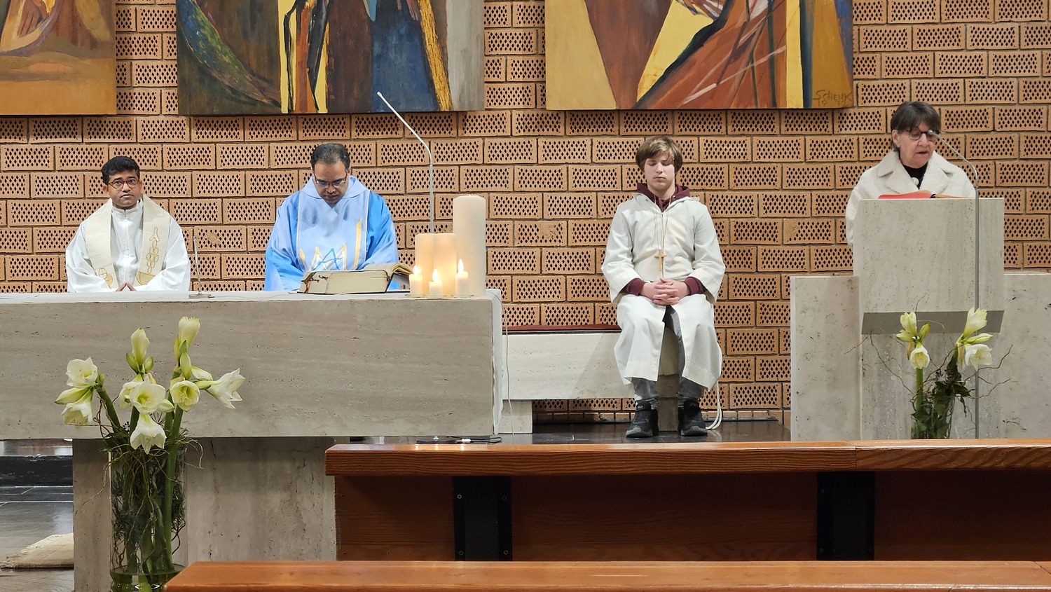 Pater Kuruvila und Pater Rijo zelebrierten den Neujahrsgottesdienst, Lektoren für die Lesungen waren Alexander Hanner und Pfarrkuratorin Gerti Ankerl; das Evangelium wurde von Pater Rijo dargebracht. Viele Gläubige der Pfarre, aber auch Gäste waren zum Neujahrsgottesdienst gekommen.