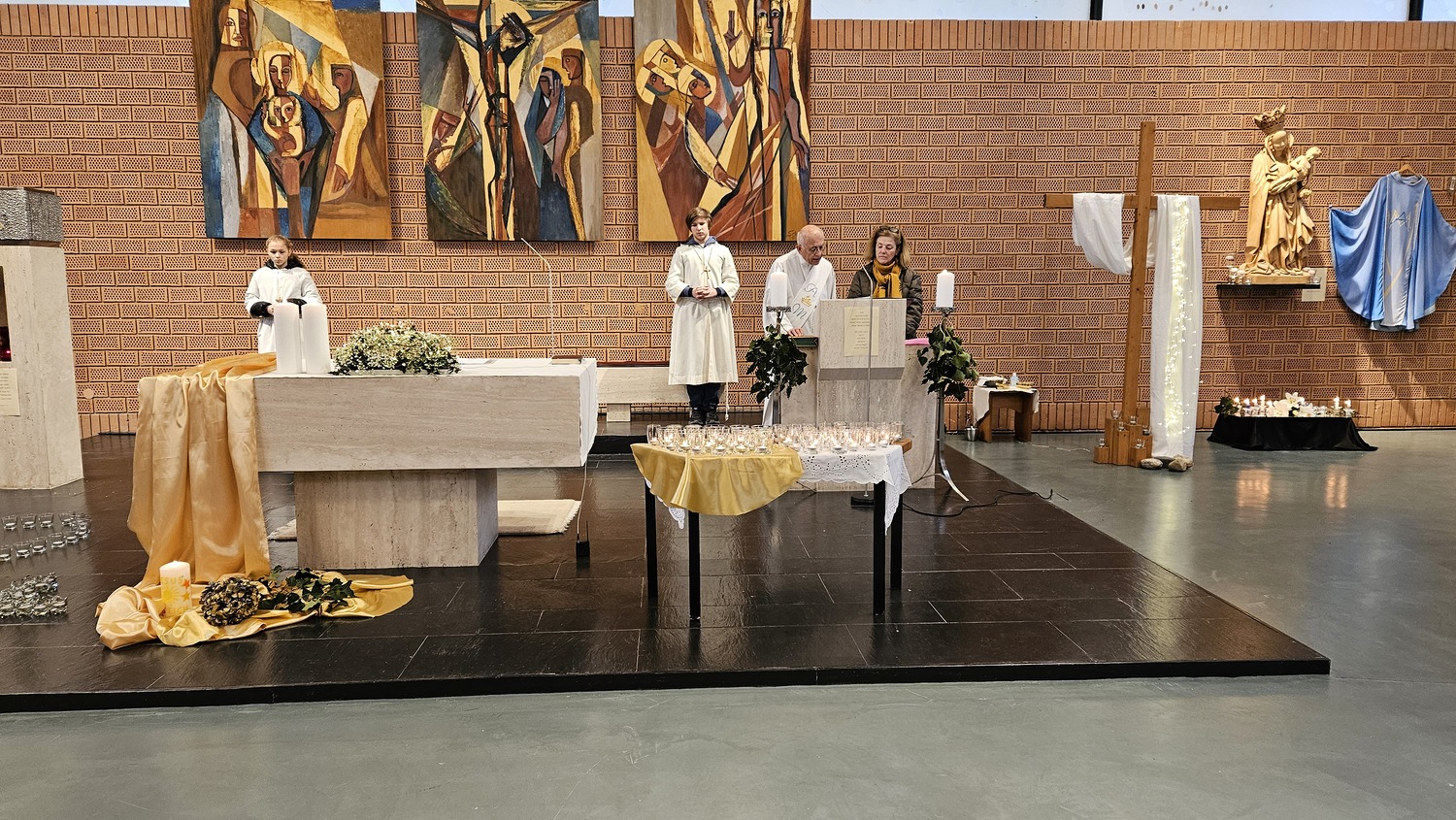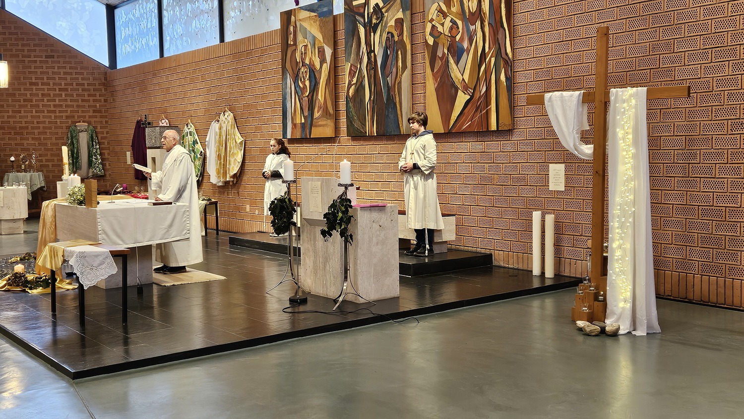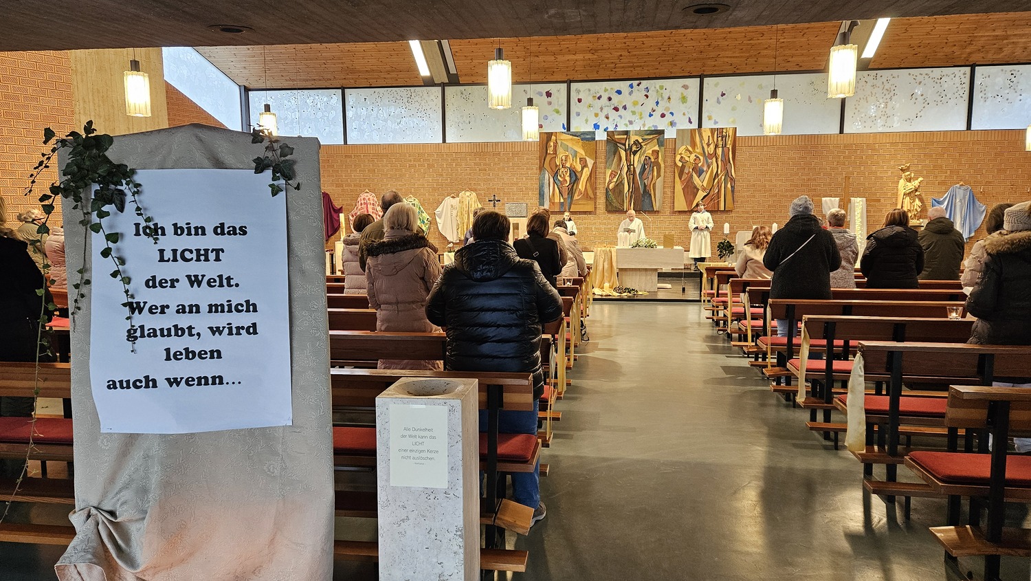Eine besondere Dekoration in dieser Heilige Messe waren die Installationen vom Lichterfest. Viele Messbesucher nutzten die Gelegenheit diese zu sehen und zu fotografieren.