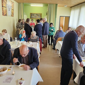 Viele Messbesucher waren in den Kommunikationsraum der Pfarrkirche Bad Sauerbrunn gekommen um zumindest eine, oder auch mehrere Suppen zu verkosten. Den Gästen hat es gefallen und geschmeckt, so war es fast selbstverständlich, dass auch das Spendenergebnis toll war. Alle Spenden werden caritativen Zwecken zur Verfügung gestellt.