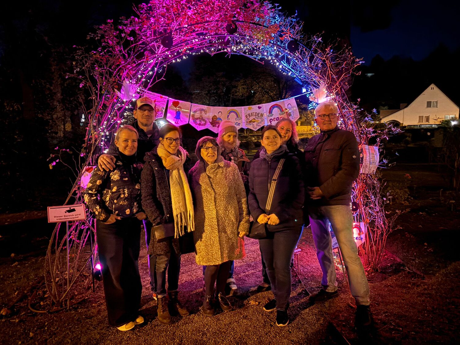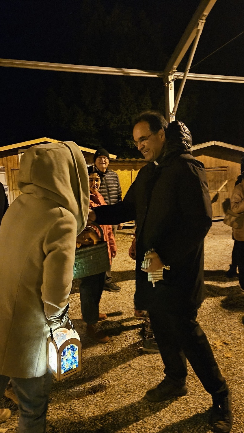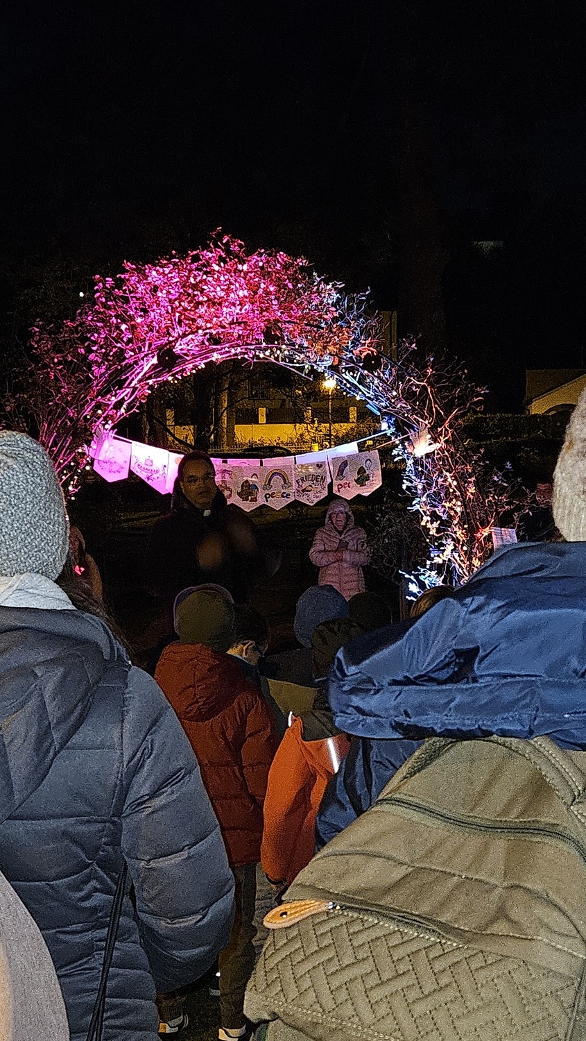 Der Laternenumzug mit den vielen Teilnehmern an der  Feier führte dann über den Hauptplatz zum Rosarium im Kurpark, wo ein Friedenstor vorbereitet war. Im Anschluss wurden durch Parter Kuruvila, Pfarrer Hankemeier und Gisi Marx Martinskipferl verteilt, die zum Teilen anregen sollten, was die Kinder und erwachsenen Gäste gerne machten. Für den Abschluss und ein gemütliches Beisammensein, hatte die Pfarre Bad Sauerbrunn Tee, Glühwein und Aufstrichbrote vorbereitet, was von den Gästern gerne angenommen wurde.