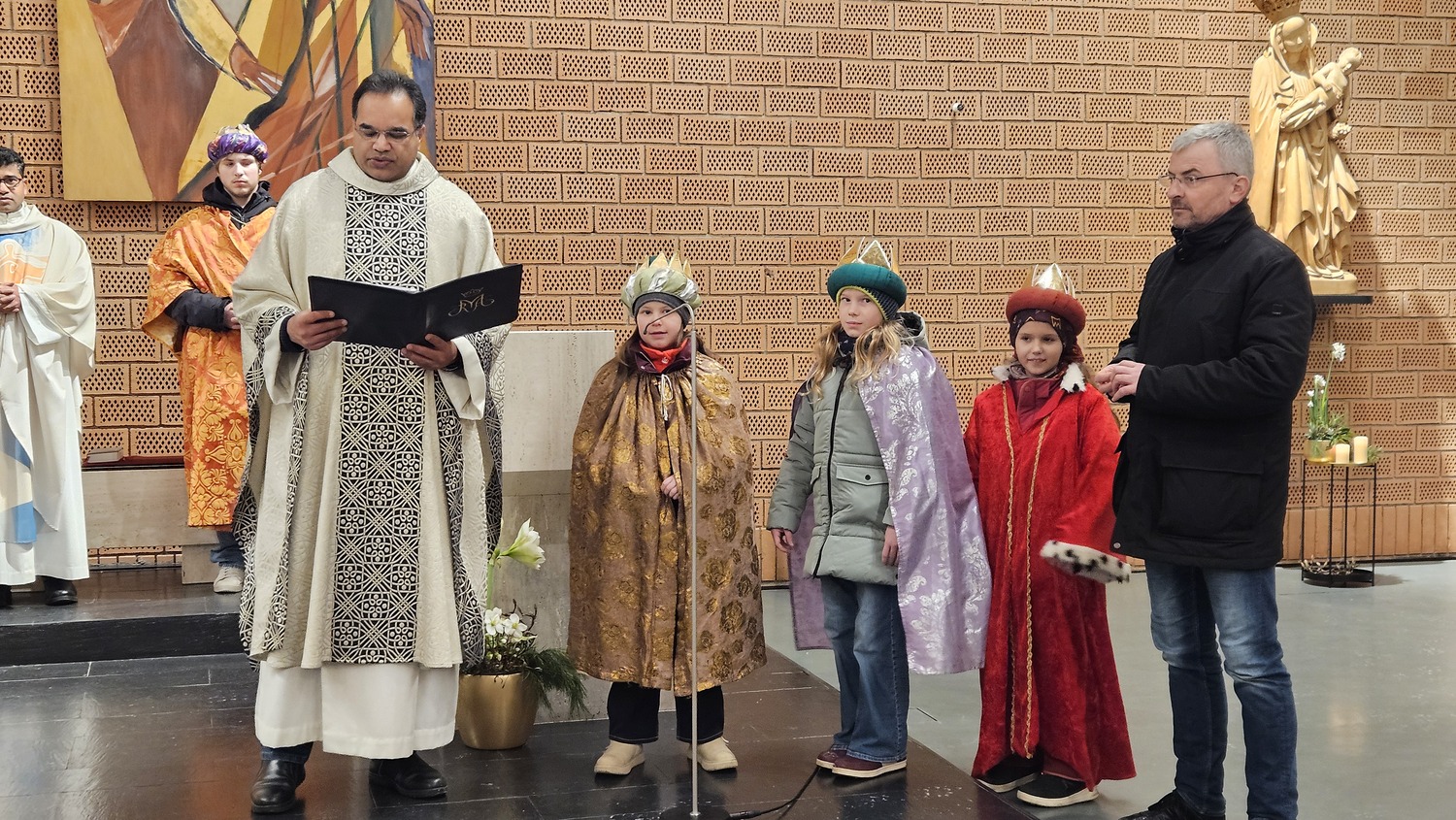 Die Sternsinger eröffneten den Gottesdienst mit ihrem Sternsingerlied und den Texten,