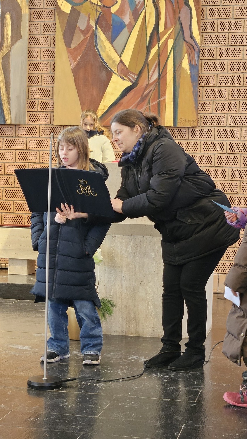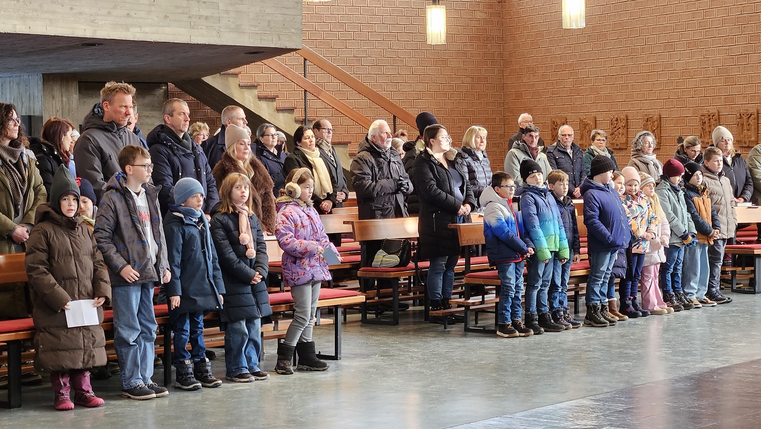 Gemeinsames Vater Unser mit den Kindern am Altar
