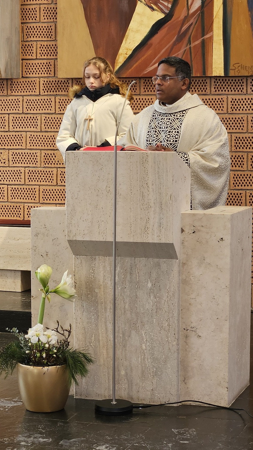 Die Messe war gut besucht und wurde von Pater Jakob zelebriert. Als Lektorinnen konnten Mütter von Erstkommunionkindern gewonnen werden und als Ministranten wirkten Johanna Lang und Alexander Hanner mit. Die Fürbitten wurden von mehreren Erstkommunionkindern vorgetragen, die an der Gestaltung der Hl. Messe engagiert mitwirkten.