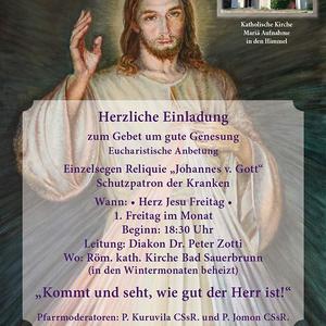 PlakatAm 1. Freitag des Monats ist Herz Jesu Freitag. Es ist ein besonderer Tag Gott um Heil und Heilung zu bitten.