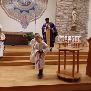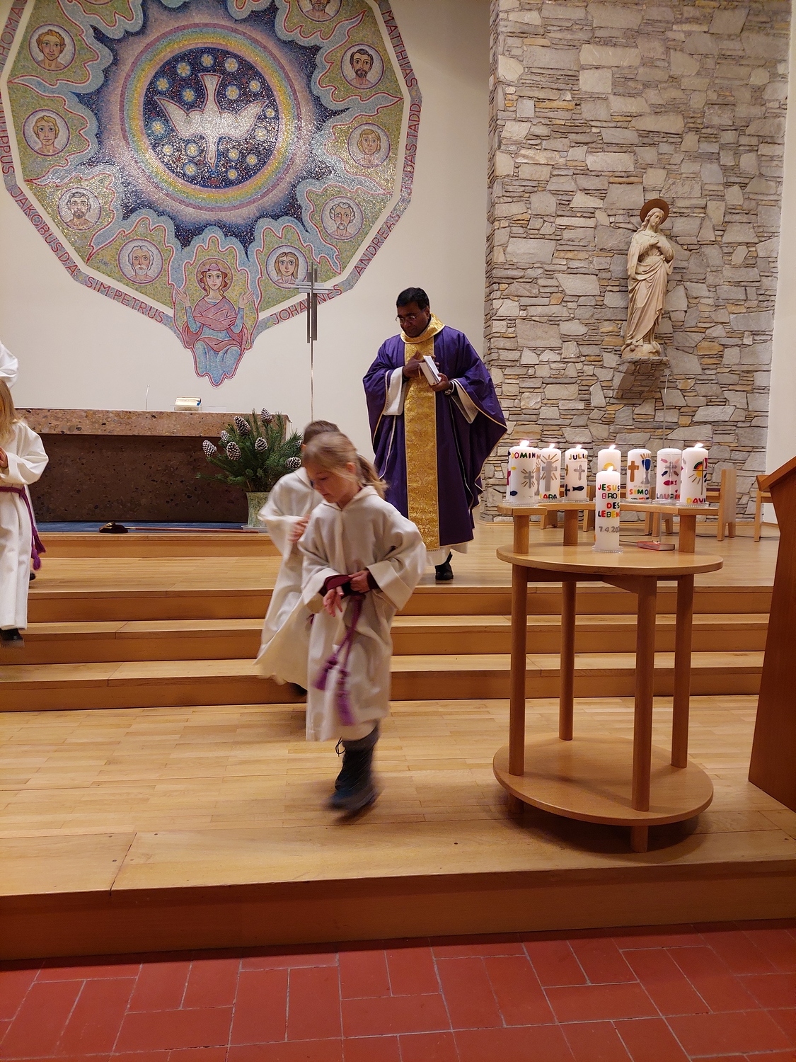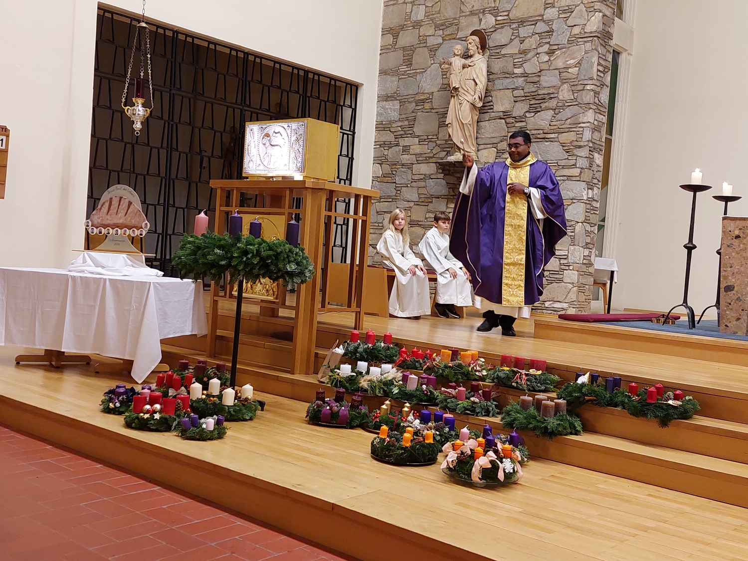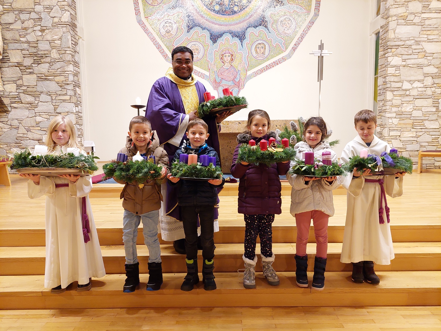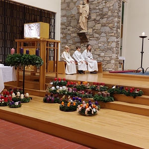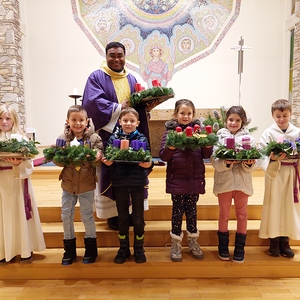 Auch dieses Jahr brachten, neben vielen Gläubigen, die Erstkommunionkinder ihre selbst gebundenen und gestalteten Adventkränze zur Segnung in die Pfarrkirche.