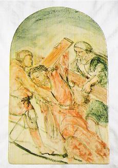 | Auf dem Weg zum "Hohen Stein" laden 15 Stationen zum Innehalten ein. Die PASSION JESU vor Augen, gestaltet von Frau Gisela Strobl, regt an zum glaubenden Schauen, zum Nach-Gehen, zum Mit-Leiden. Der Kreuzweg, den Jesus aus Liebe zu uns Menschen gegangen ist, gibt Kraft und Zuversicht in eigenen leidvollen Lebenssituationen. Er mündet ein in die Überwindung des Todes durch die Auferstehung des Herrn. Mensch und Schöpfung gehen ihr entgegen. |