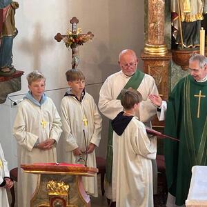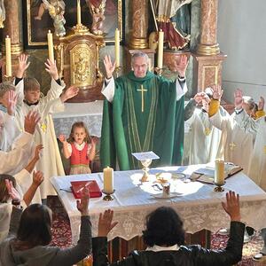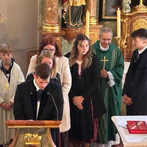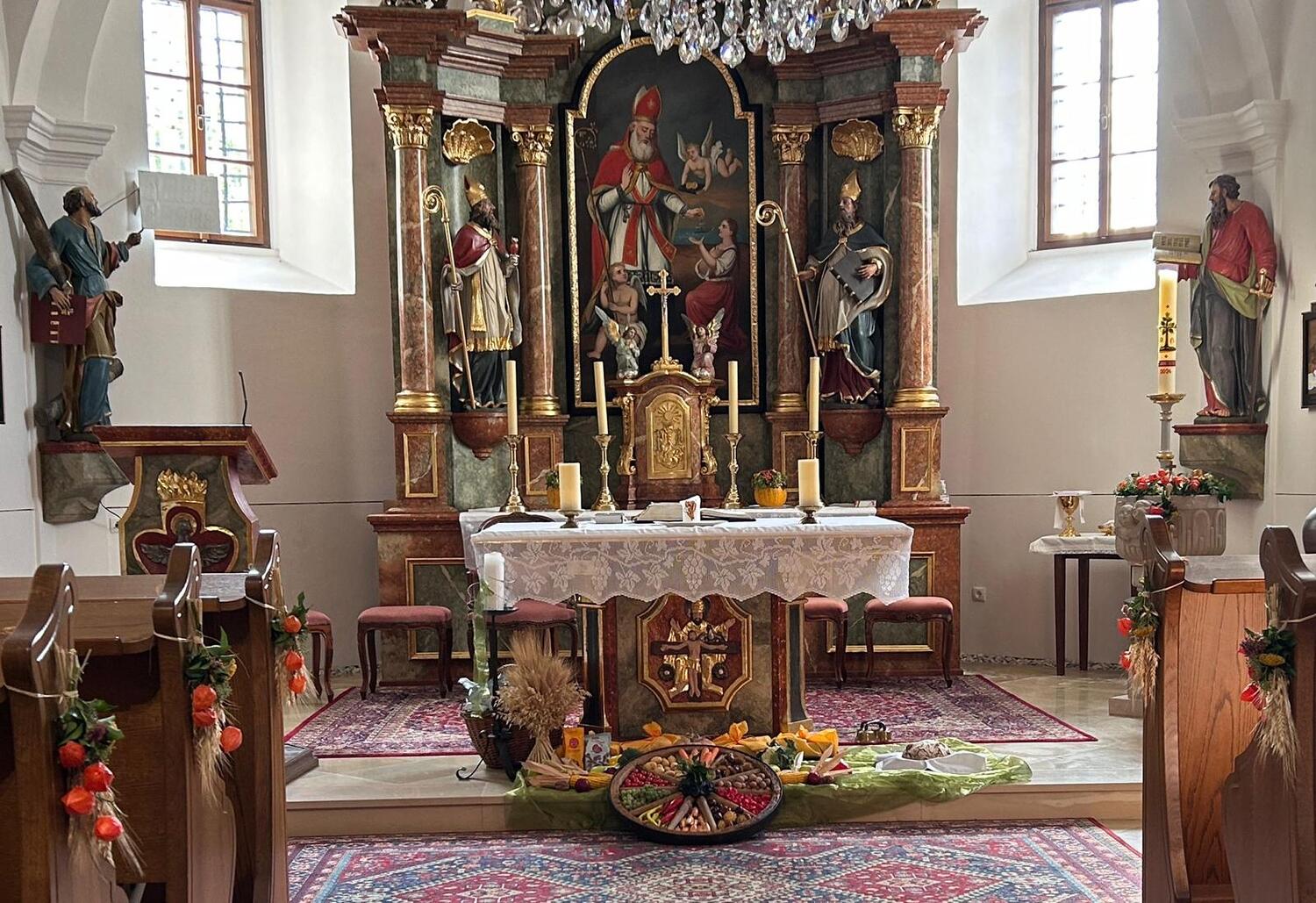 Am Sonntag, dem 29. September trafen sich die Gläubigen der Pfarre Kobersdorf beim Pfarrhof, wo die Erntekrone gesegnet wurde. In einer Prozession marschierte dann Groß und Klein zur Pfarrkirche, wo mit Generalvikar Michael Wüger ein wunderschöner Festgottesdienst gefeiert wurde. Besonders würdevoll haben die Kinder mit verschiedenen Texten und Liedern die Messe mitgestaltet.
