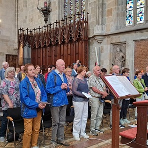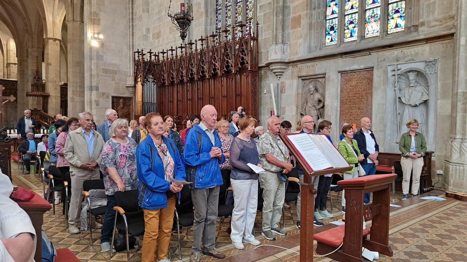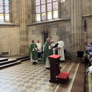 Um 10.00 Uhr feierten Dechant Shinto und Pfarrer Mück mit dem Pfarrverband einen feierlichen Gottesdienst im Martinsdom von Bratislava, welcher von Christa Reiner und mehreren Sängerinnen musikalisch gestaltet wurde. Nach einer Domführung startete – in 3 Gruppen – der erste Teil der Stadtführung. Besichtigt wurden u. a. die Venturgasse, die Michaelergasse mit dem Michaelertor, der Hauptplatz mit dem Alten Rathaus und dem Maximilianbrunnen sowie die Alte Oper. Ein Höhepunkt war die Außen- und Innenbesichtigung des Primatialpalastes.