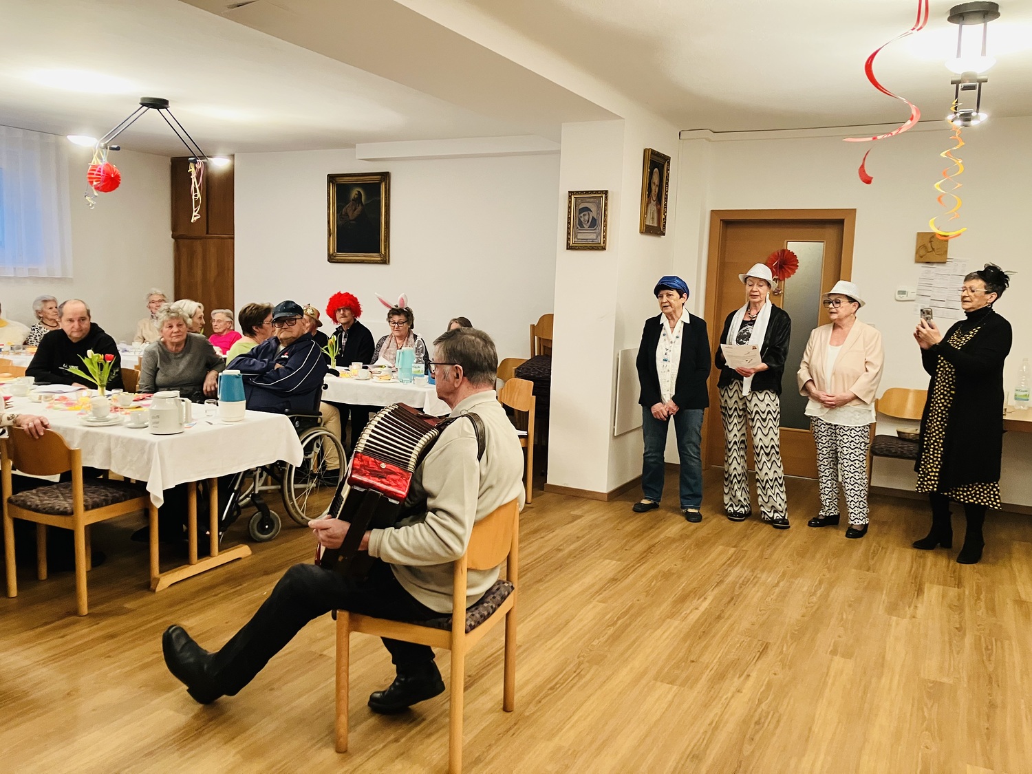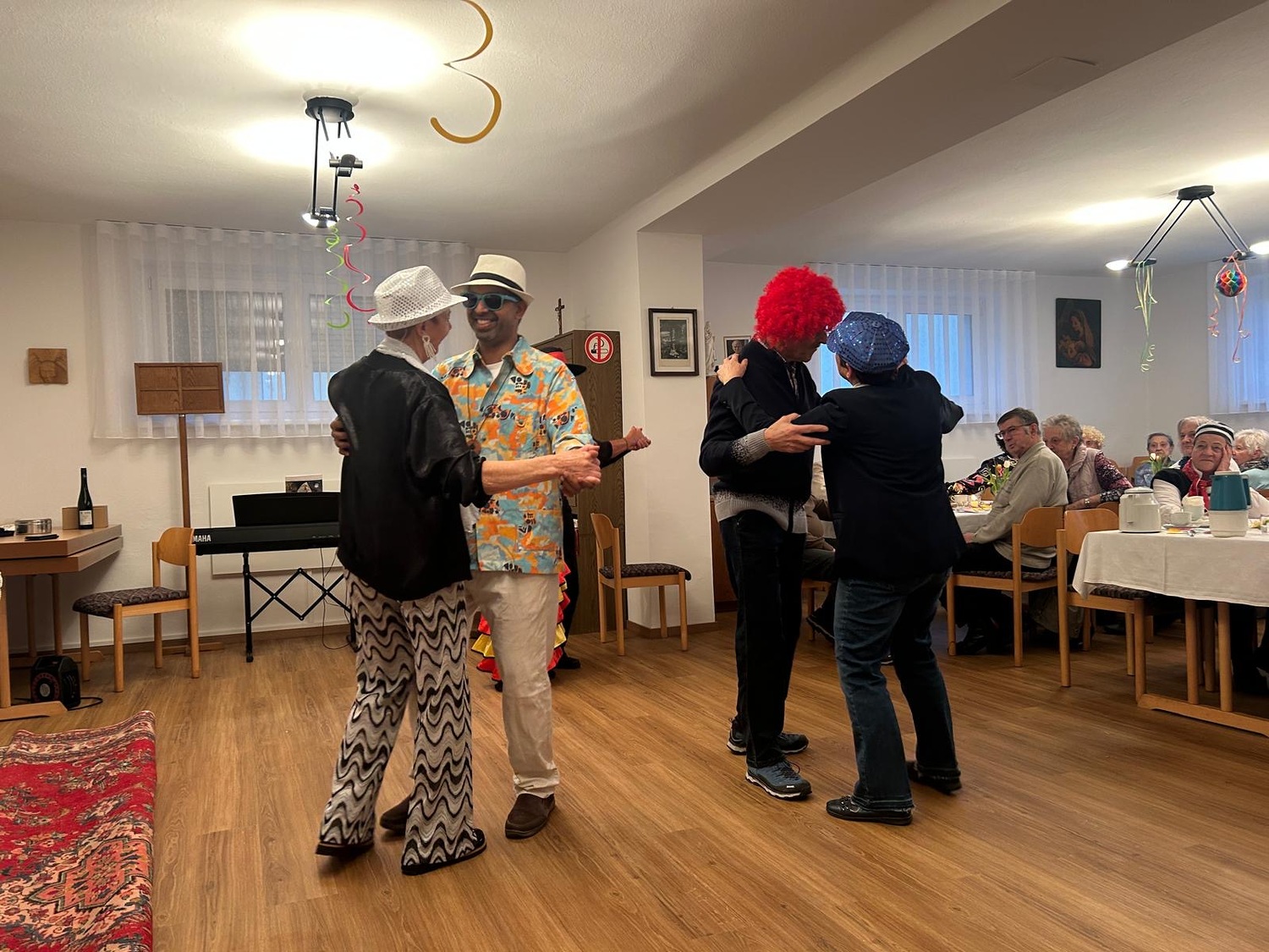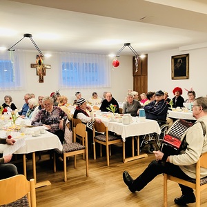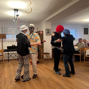 Mit lustigen Texten, Witzen und viel Humor wurde herzlich gelacht. Gemeinsam sang man alte, vertraute Lieder, musikalisch begleitet von einem Musikanten, der für beste Stimmung sorgte. Schon bald hielt es einige nicht mehr auf den Stühlen, und es wurde getanzt und geschunkelt.