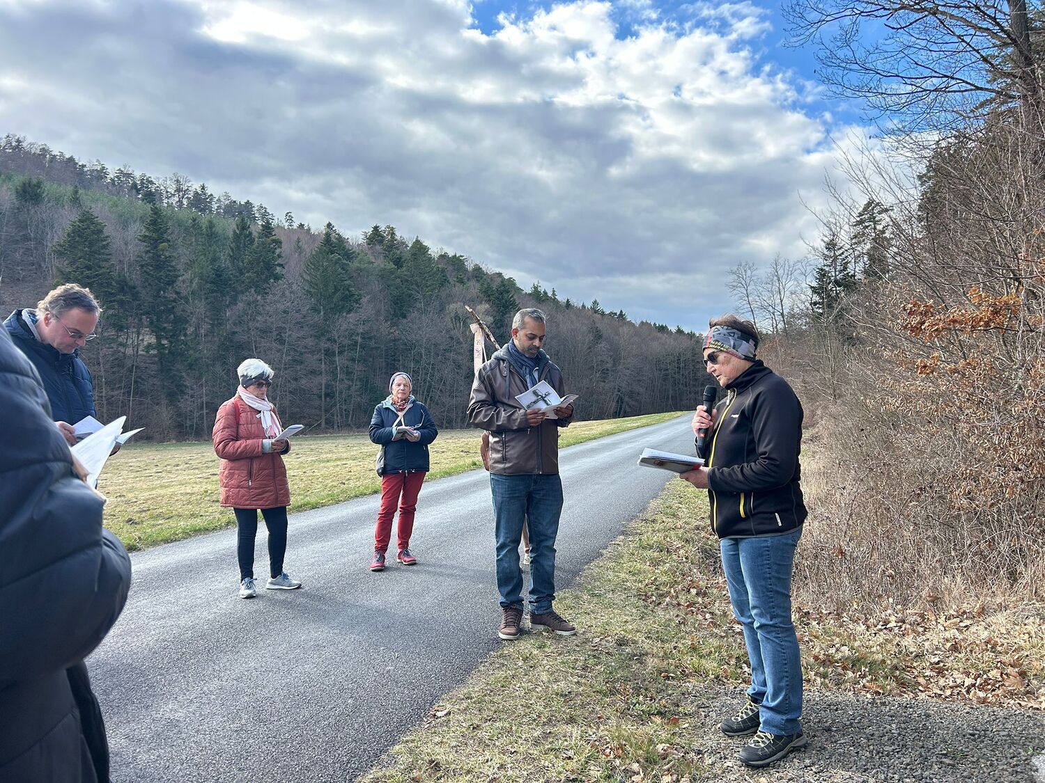 Bei strahlendem Sonnenschein und typisch märzlichem, etwas windigem Wetter machten sich die Teilnehmerinnen und Teilnehmer auf den Weg. Während wir von Station zu Station zogen, hielten wir inne, um den Leidensweg Christi zu betrachten. Die Mischung aus tiefgründigen Gebeten, gemeinsamen Liedern und der Bewegung an der frischen Luft schuf eine ganz besondere Atmosphäre der Einkehr.