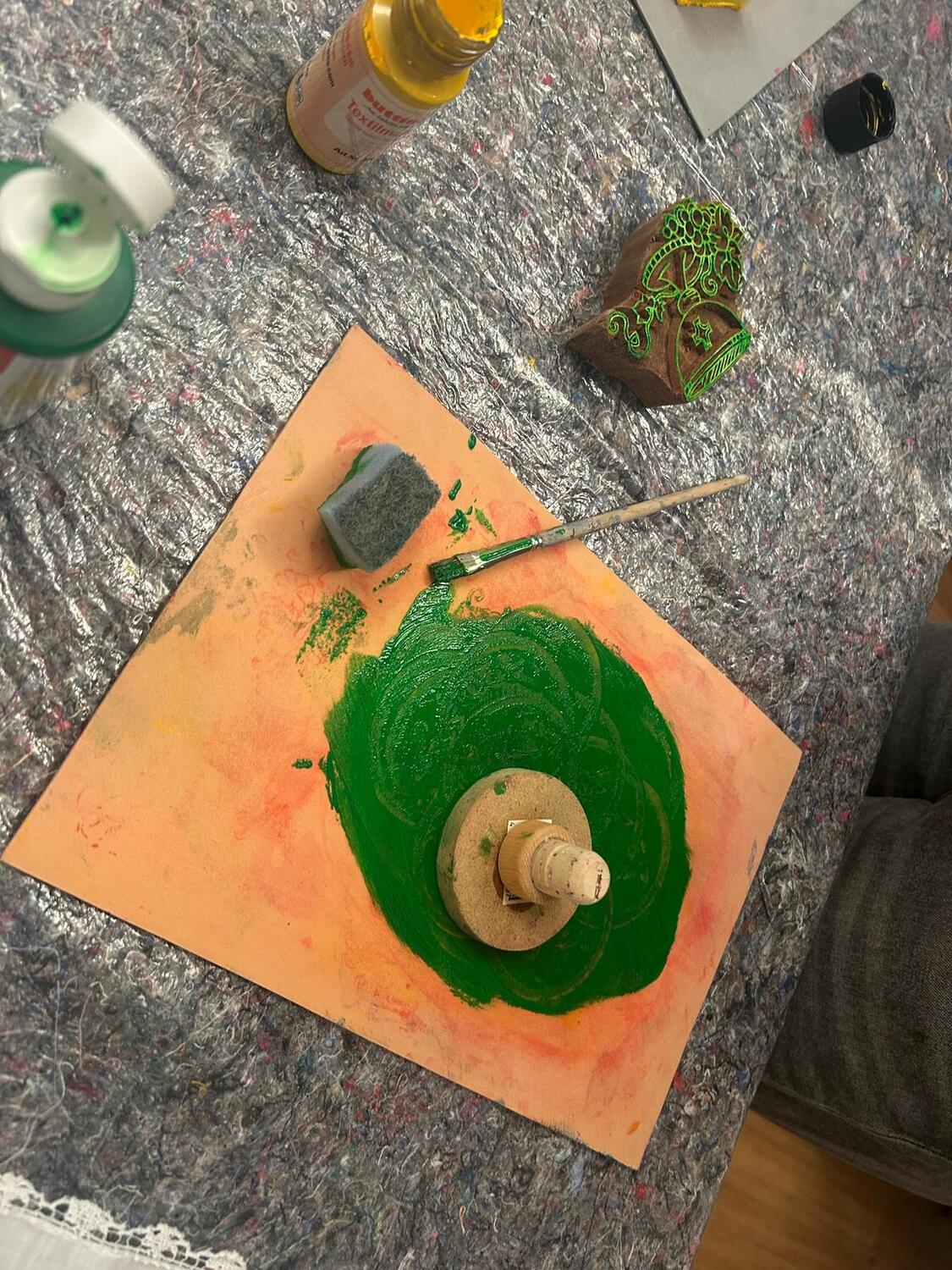 Besonders schön zu beobachten war das bunte Miteinander: Von Kindern und Jugendlichen bis hin zu erfahrenen Frauen waren alle Generationen vertreten. Gemeinsam lernten sie die Technik des Handdrucks kennen, deren Wurzeln ursprünglich im Orient liegen.