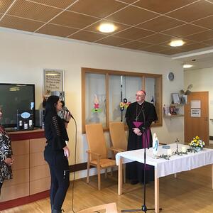 Am Sonntagvormittag fand in der Pfarre Weppersdorf ein bunt gestalteter Visitationsgottesdienst statt, den auch die Volksschüler aus Weppersdorf mit Liedern mitgestalteten. Nach einer Agape im neuen Pfarrheim ging es zum gemeinsamen Mittagessen mit dem Pfarrgemeinderat. Im Anschluß besuchte der Bischof das Pflegekompetenzzenttrum Weppersdorf, wo wir vielen Menschen ein Lächeln ins Gesicht zaubern konnten.