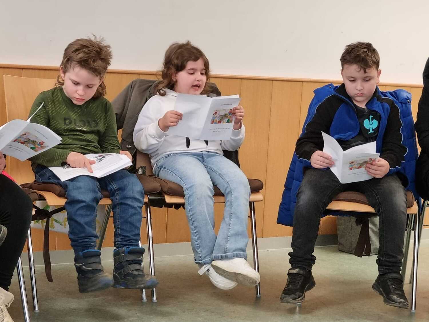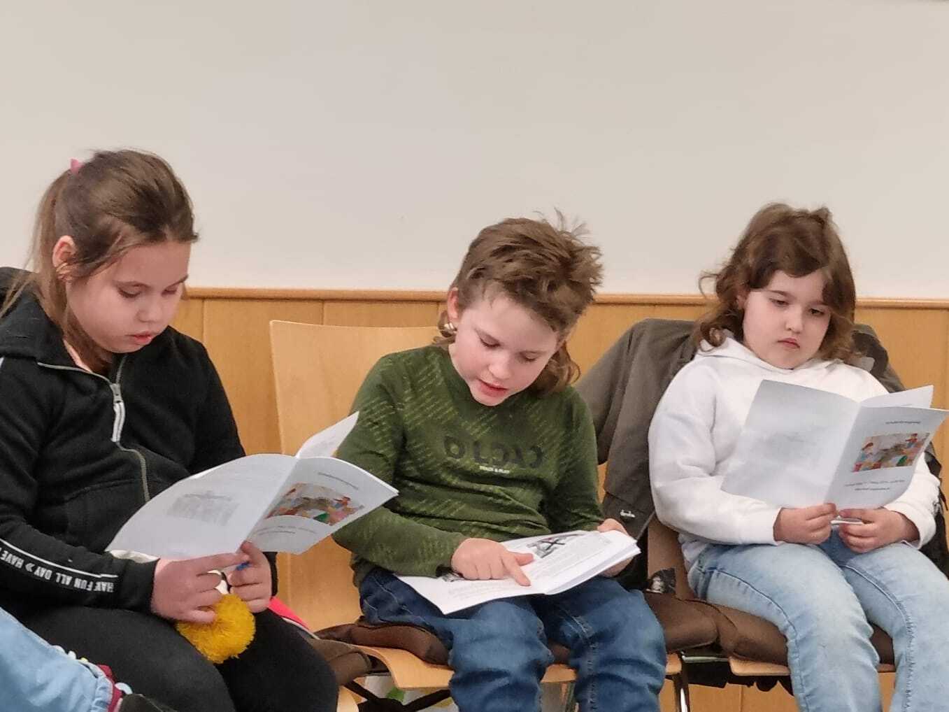 Am Donnerstag, dem 7. März luden die Erstkommunionkinder zu einem Kreuzweg in den Pfarrgarten Lackenbach ein. Wegen des unbeständigen Wetters wurde die Andacht in den Pfarrsaal verlegt.