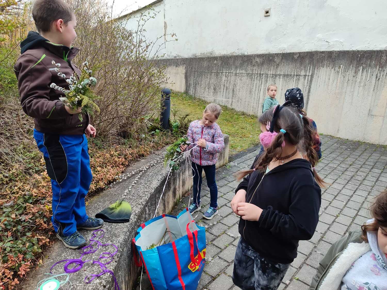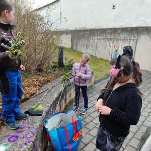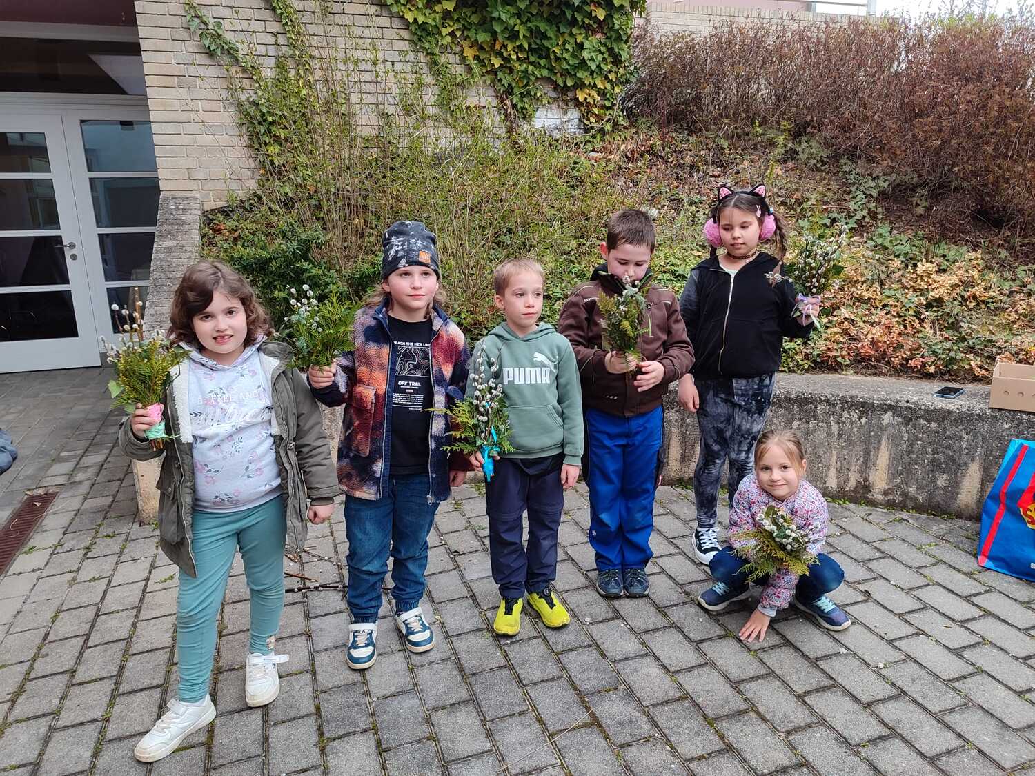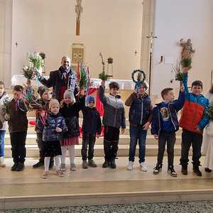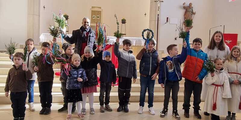 Die Palmbuschen, die von den Kindern in die Kirche getragen wurden, wurden ein paar Tage davor gemeinsam im Pfarrheim gebunden. Die Freude darüber war den Kindern ins Gesicht geschrieben.